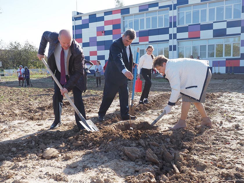 Леонид Громов преподнес школе подарок - ящик с крупными, первосортными яблоками. Такие же, по словам министра, через четыре года учителя и дети будут собирать с своем пришкольном саду. На территории школы дети и учителя вместе с почетными гостями высадили 27 саженцев плодовых деревьев. За ними теперь будут заботливо ухаживать, ведь каждое выращенное дерево - это не только труд, вложенный в него, это еще и память, передаваемая последующим поколениям.