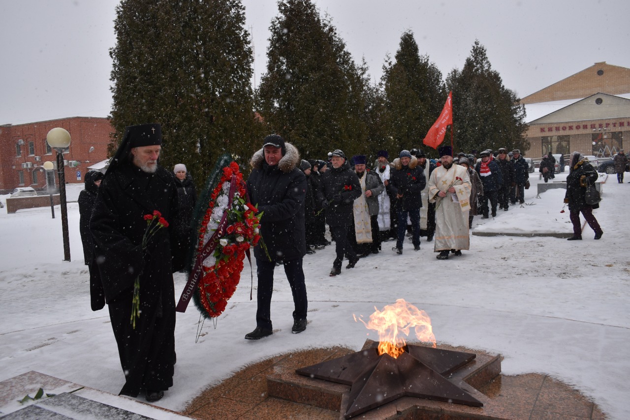 В память о павших воинах по благочестивой традиции духовенство совершило заупокойную литию. К Вечному огню и стеле неизвестного солдата возложили венки и цветы.