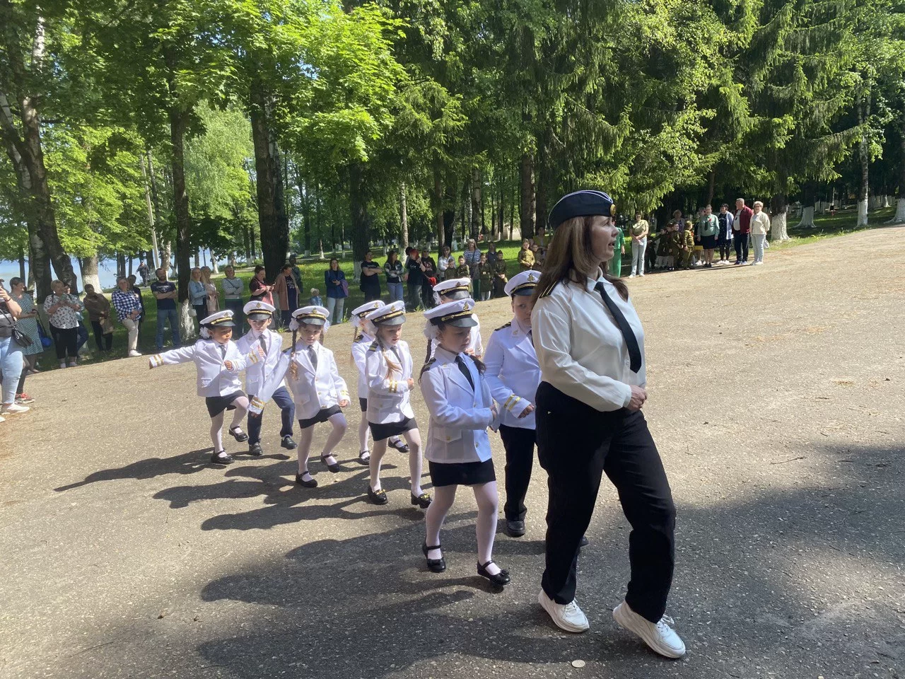 Отряды дошкольников были одеты в форму разных армейских частей: лётчики, моряки, танкисты, пограничники, десант, пехота. Несколько команд надели форму военных лет с красными гвоздиками и георгиевскими ленточками на груди – отряды «Правнуки Победы», «Юные патриоты».