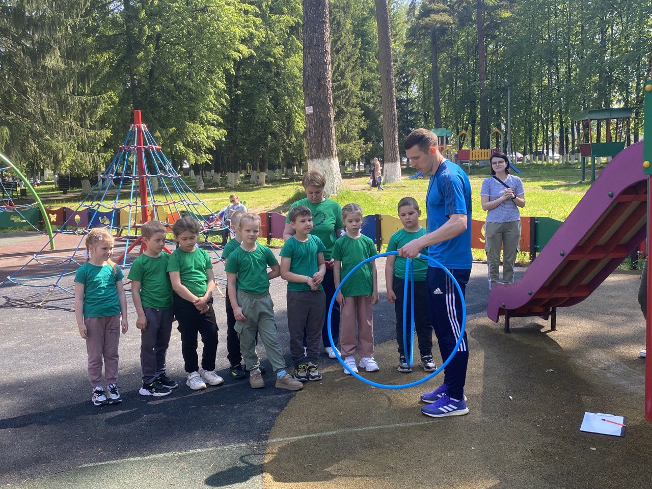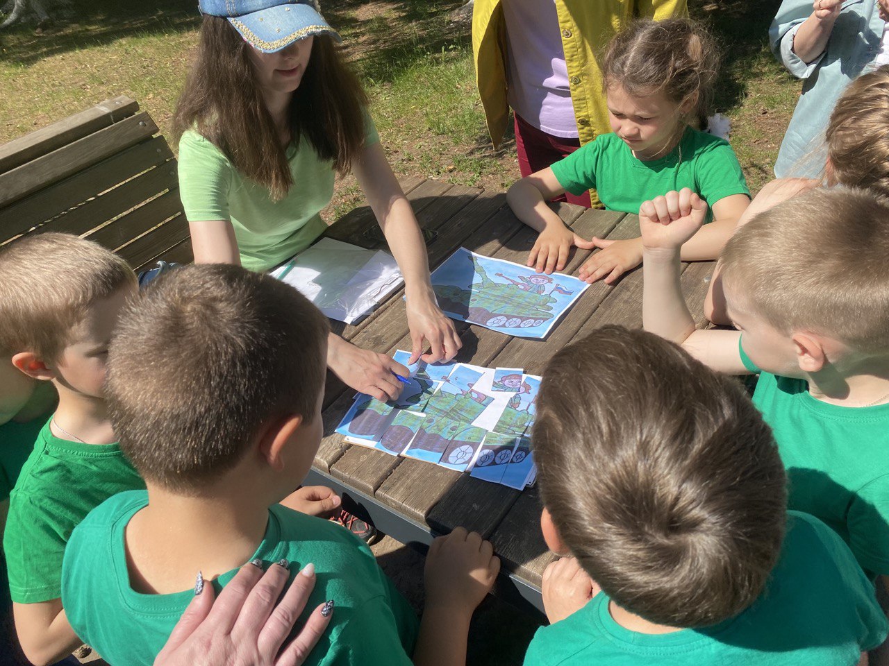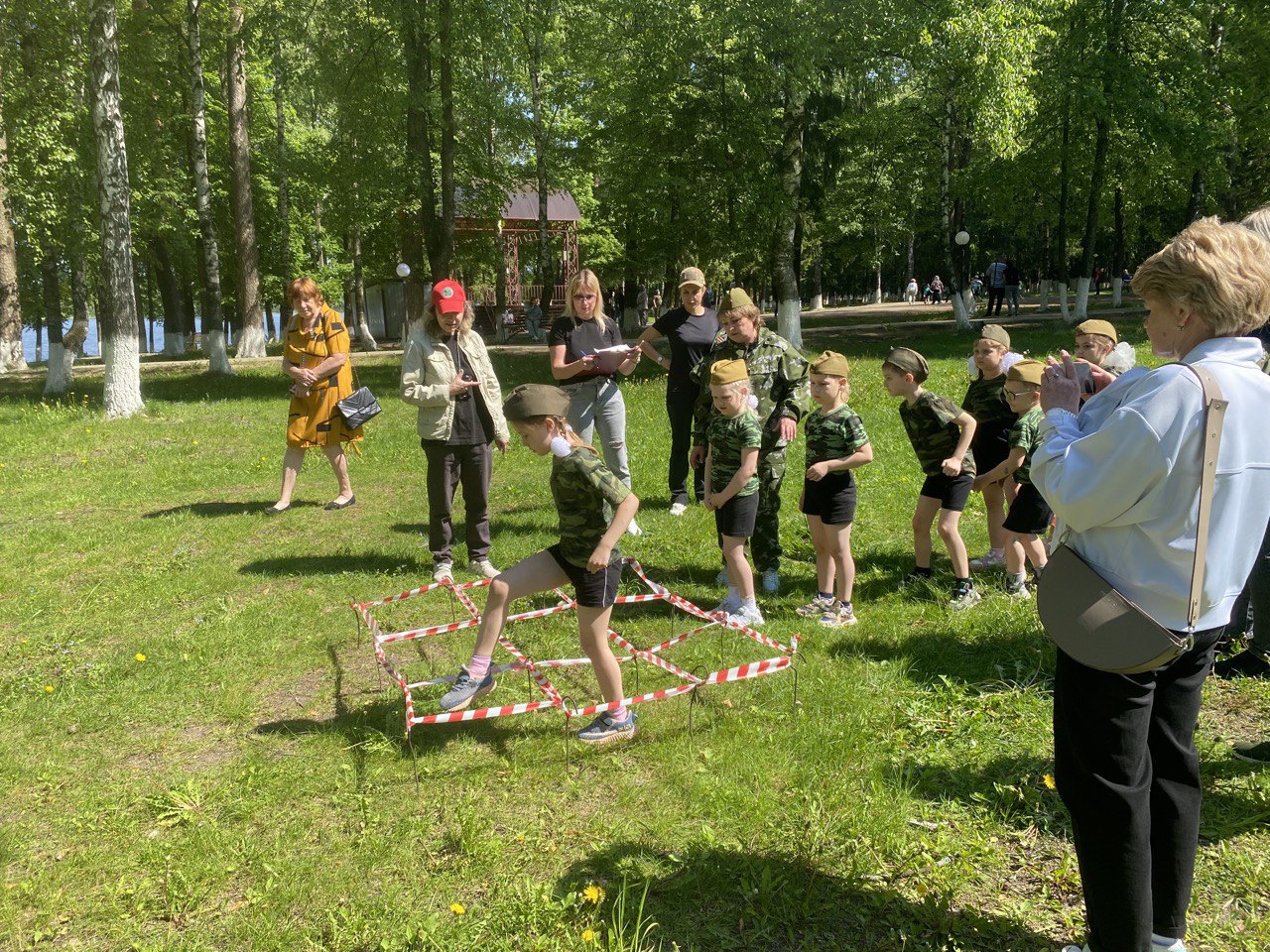 Спортивные состязания были подобраны специально для дошколят – «разведчики» должны были пройти лабиринт из лент, не задев их; на станции «болото» ребята переставляли обручи-кочки, чтобы перебраться через препятствия; на задании «Секретные документы» дошкольники собирали мозаики; на этапе «Снайперы» соревновались в меткости — бросали снаряды в круг.