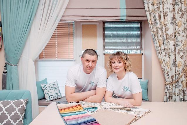 Студия текстильного декора - это «царство» супруги: здесь шьют шторы. В цехе, где изготавливаются рулонные шторы и жалюзи, главенствует Дмитрий. Однако все подчинено единому дизайну, который Екатерина часто разрабатывает сама. Всего же в компании трудится около двадцати сотрудников: дизайнеры, швеи, монтажники, бухгалтер, специалист по СММ.