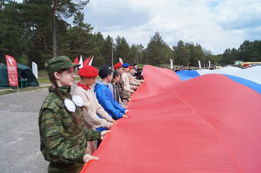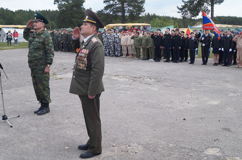 На первом этапе состязаются младшие команды в возрастной категории 11-13 лет. Всего их 22 из всех муниципалитетов Калужской области. Уже в ходе открытия команды прошли конкурсные испытания по строевой подготовке: прохождение строевым шагом и отдельно с песней. В завершение церемонии открытия все участники развернули огромное полотнище российского триколора под песню «Моя страна».