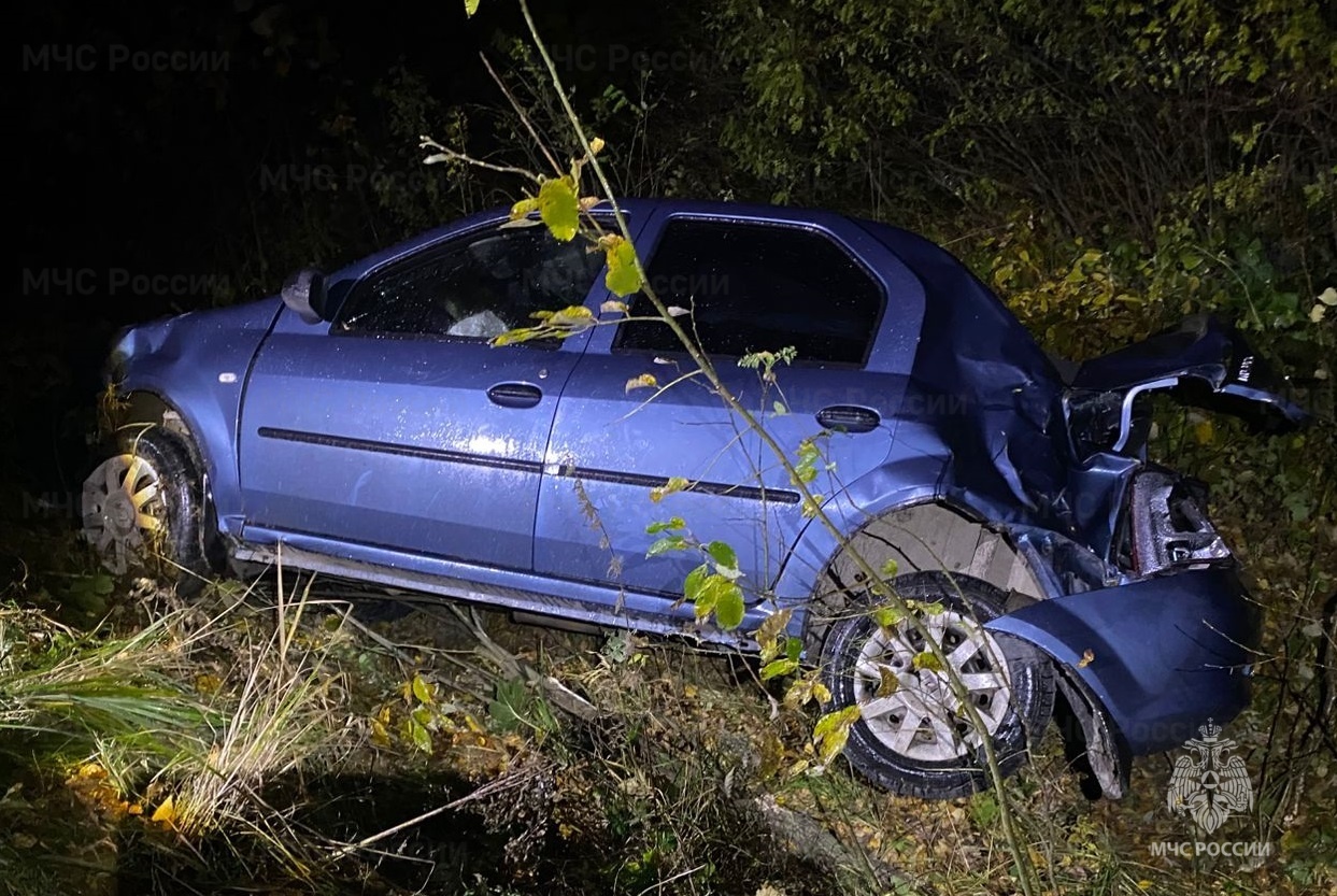 В начале восьмого на 7 км дороги Козельск – Ульяново автомобиль Renault Logan улетел в кювет. Предположительно, водитель потерял управление над транспортным средством.