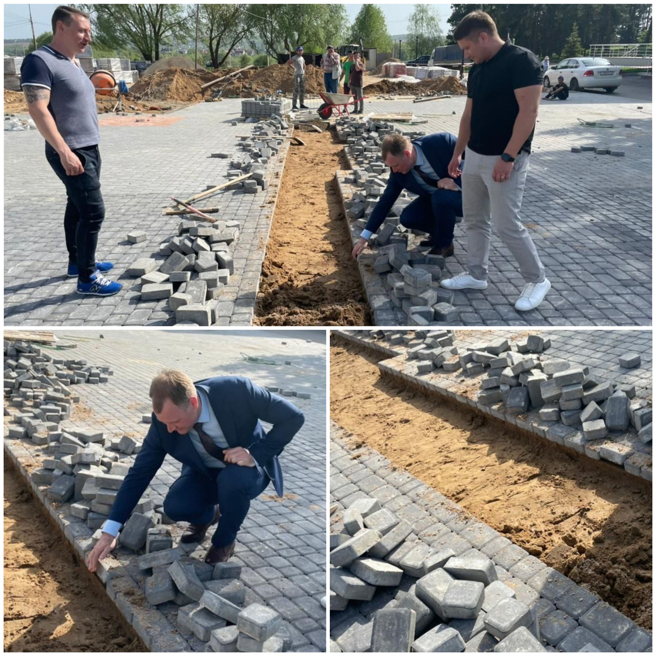 Комиссия, в которую вошли представители администрации, глава города Дмитрий Плеханов, депутаты Максим Журавлев и Роман Королев, выявила значительное расхождение качества пескобетонной смеси, относительно заявленной в смете. На такую смесь было уже уложено около 200 квадратных метров тротуарной плитки.