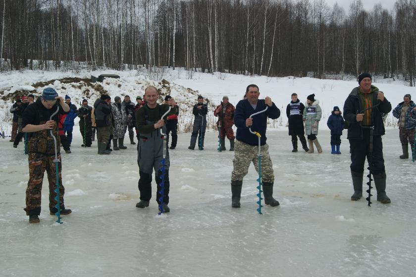 Когда рыбалка завершилась, участники собрались у полевых кухонь, а после сытного обеда началось состязание по скоростному бурению лунок. Победитель, быстрее всех пробуривший лунку, мог выбрать любой приз из пяти.