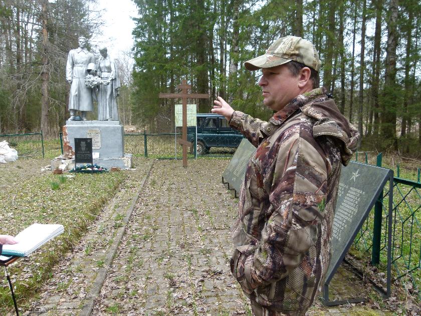 Александр Казаков рассказал, что братскую могилу в полутора километрах от деревни Игумново они с охотниками обнаружили случайно во время очередного выезда в лес. Воинское захоронение с памятником находится в самой глуши, в заболоченной местности. Члены клуба сочли своим долгом взять шефство над памятным местом. Первое, что сделали, - через архив восстановили имена захороненных здесь красноармейцев и установили мемориальные плиты с надписями. Благоустроили территорию: уложили плитку, покрасили ограждение, сделали косметический ремонт памятника, который, как оказалось, находясь в гуще леса, не сильно пострадал от времени и природных стихий. А в этом году памятник отремонтировали уже капитально. Вместе с товарищами Александр Яковлевич приезжает сюда в памятные даты, чтобы поклониться погибшим защитникам Родины.