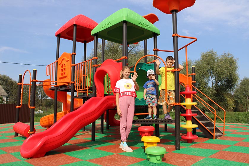 Также были закуплены бордюры, необходимые для установки пластикового покрытия детской площадки. Посильную помощь в монтировании бордюров оказали работники местной птицефабрики.