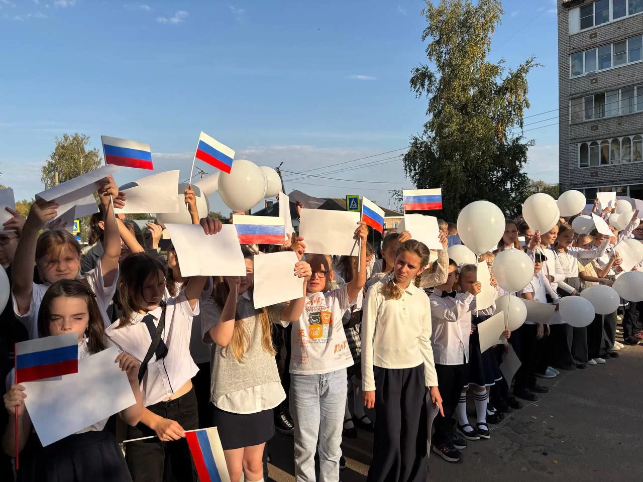 На линейки ребята собрали код доступа к будущему, исполнили Гимн России и станцевали флешмоб.