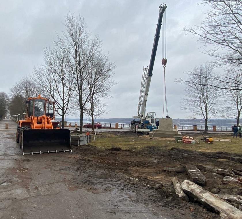 Сегодня Дмитрий Удалов показал своим подписчикам в соцсетях, как проходит процесс установки монумента. Напомним, гранит для отделки постамента был заказан в Петрозаводске.