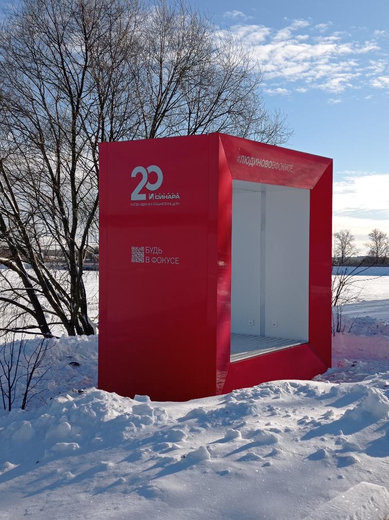 Объект «Будь в фокусе» расположен на набережной озера Ломпадь вблизи центра «Бригантина». Он представляет собой большую рамку, которая позволит жителям и гостям Людинова сделать яркие и необычные фотографии, взяв «в фокус» то, что действительно важно – виды города, лица близких людей или собственное настроение. Внутри арт-объекта расположена широкая скамейка, которая делает его удобным местом для отдыха, а также usb-розетки для зарядки гаджетов. Линейная подсветка по периметру станет ярким обрамлением для фотографий в темное время суток. За счёт оригинальности и практичности конструкция может стать точкой притяжения людиновцев и гостей города. В городе уверены, что помимо функционального назначения арт-объект позволит продвигать бренд территории в соцсетях, повысить число упоминаний о Людинове за счёт использования официального хэштега #Людинововфокусе.