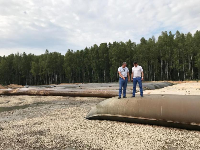 Сегодня на озере работает техника, через плавучие пульпопроводы качают из озера ил, который затем помещается в геотубы, геотубы складируются на подготовленные заранее площадки.