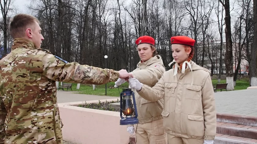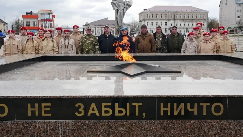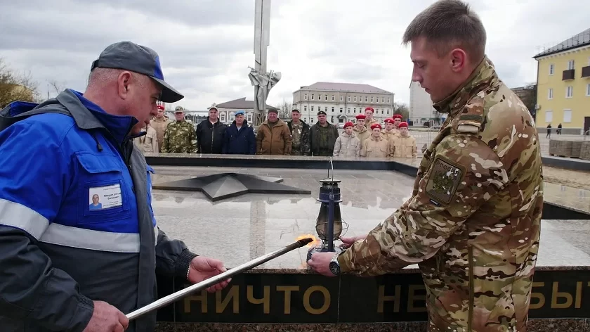 В торжественной обстановке, в присутствии юнармейцев, воинов-интернационалистов, участников специальной военной операции, а также активных общественников, под контролем работников газовой службы пламя Вечного огня, доставленного в Людиново с Зайцевой горы, временно затушили. Его частичку бережно участник специальной военной операции Александр Коняшкин вместе со школьниками передали на хранение в храм Казанской иконы Божией Матери.