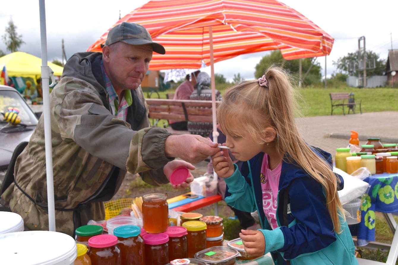 Ярмарка-дегустация мёда от местных пчеловодов стала на празднике местом притяжения гостей. Вячеслав Буркин и другие пасечники рассказали о целебных свойствах перги, маточного молочка и, конечно же, самого мёда. Они рассказывали и угощали гостей в честь сладкого праздника Медового Спаса.