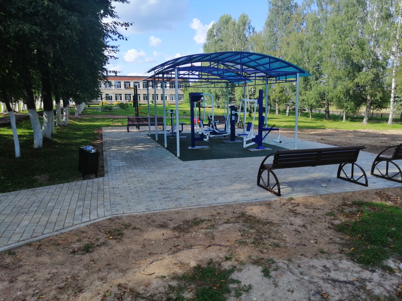 В ходе реализации проекта было установлено шесть спортивных уличных тренажеров под навесом и атлетический комплекс с турником и уличным тренажером для бега и ходьбы. Они выполнены из экологически чистых материалов, имеют яркий дизайн, высокую степень безопасности и подходят для занятий всех возрастных групп. Выполнены также работы по благоустройству территории: уложена тротуарная плитка, установлены беседка для отдыха и скамейки.