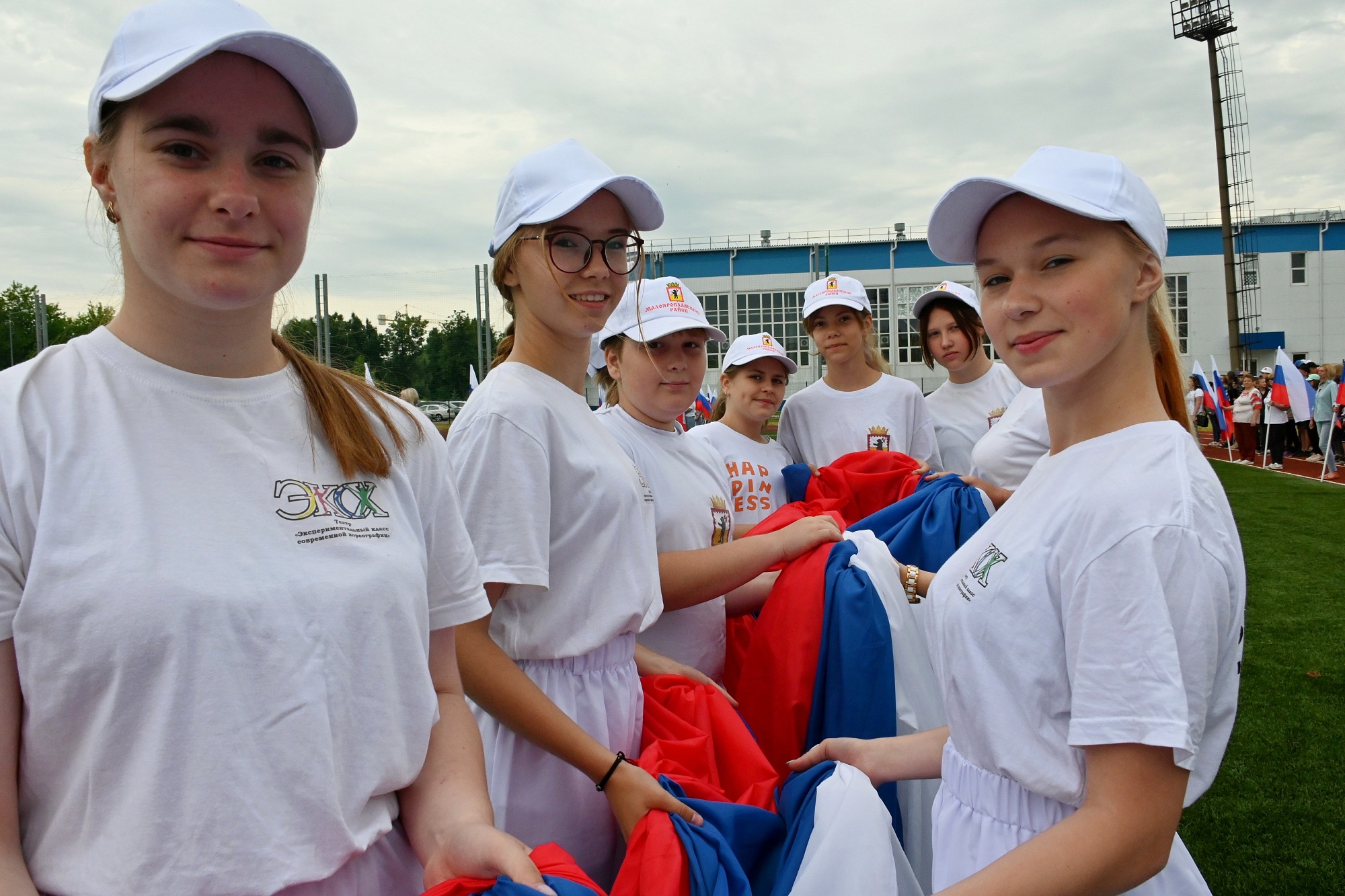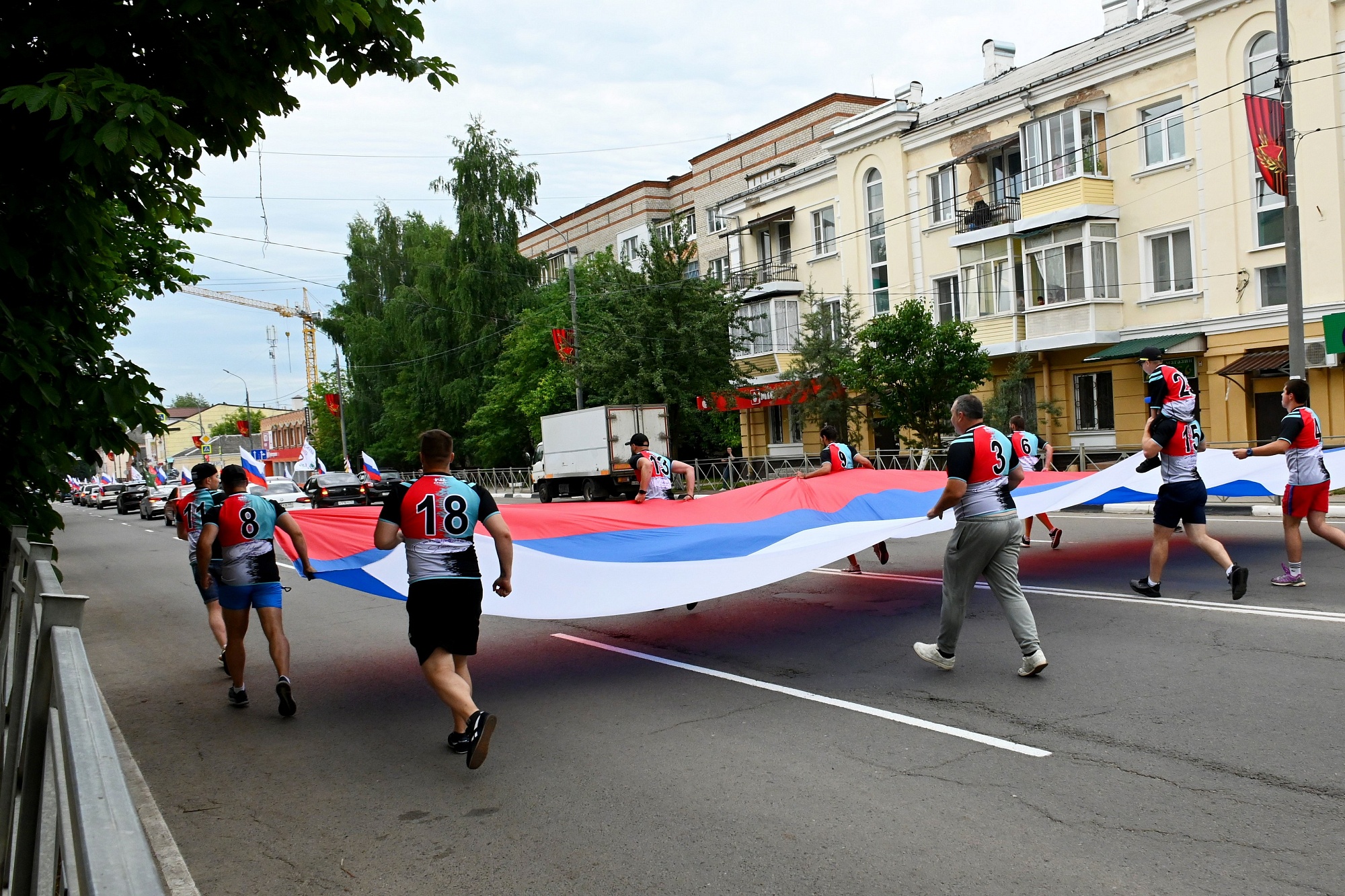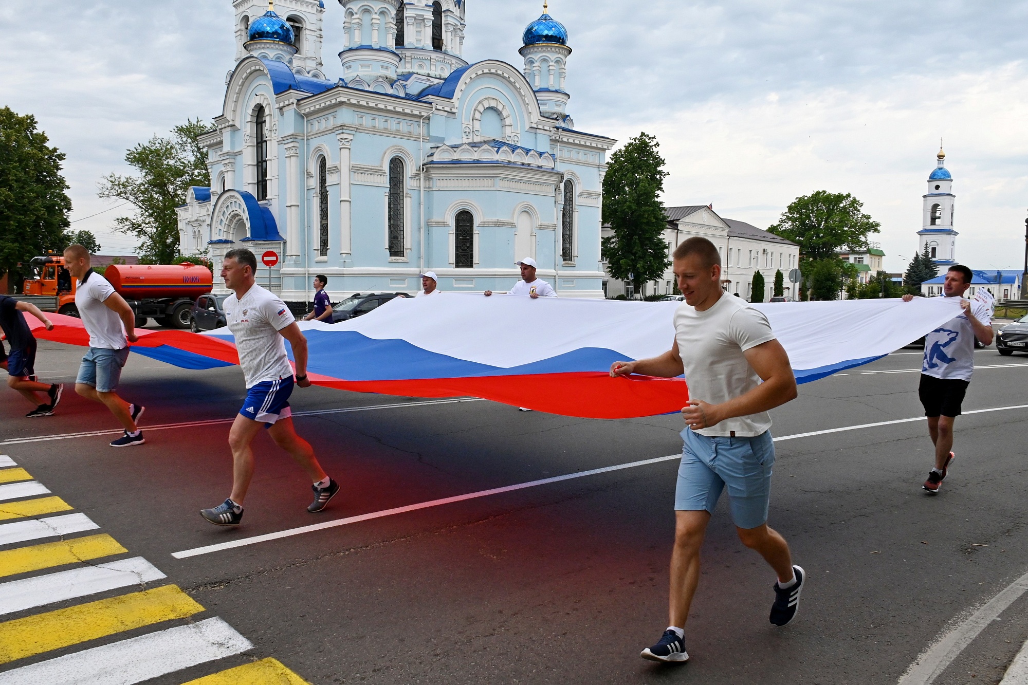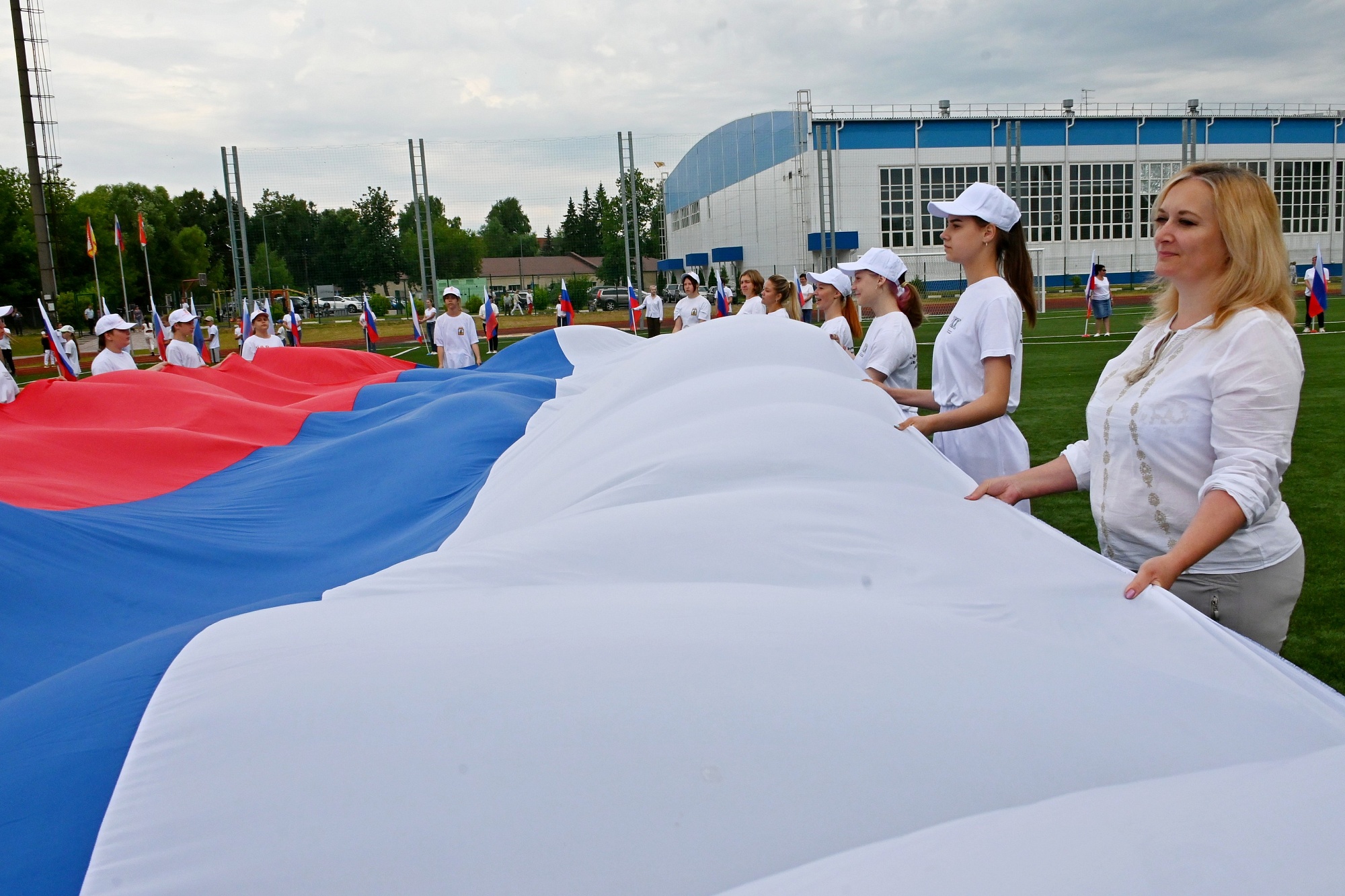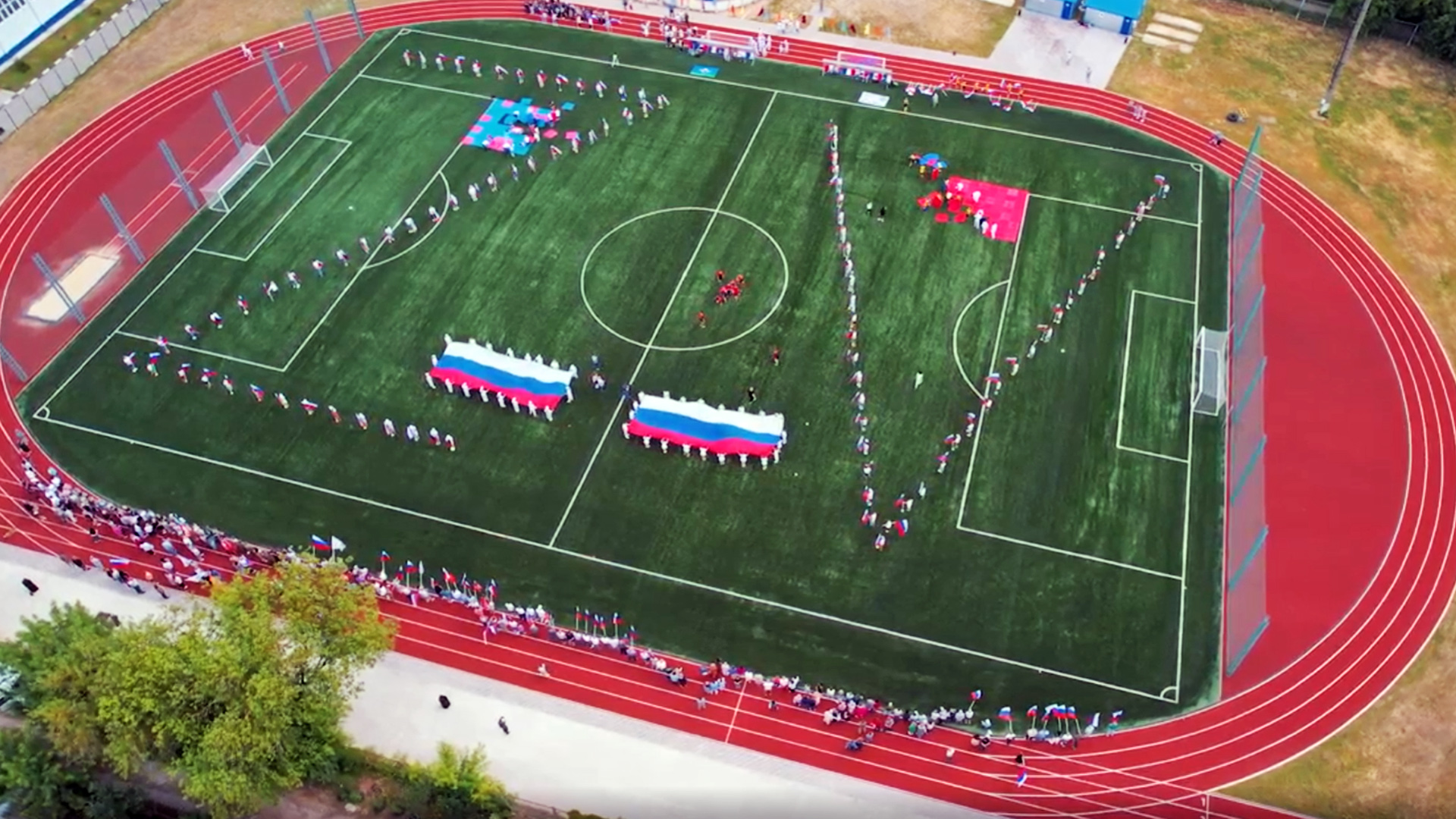 Здесь представители молодёжных организаций выстроились буквами Z и V, а также растянули двенадцатиметровые триколоры.