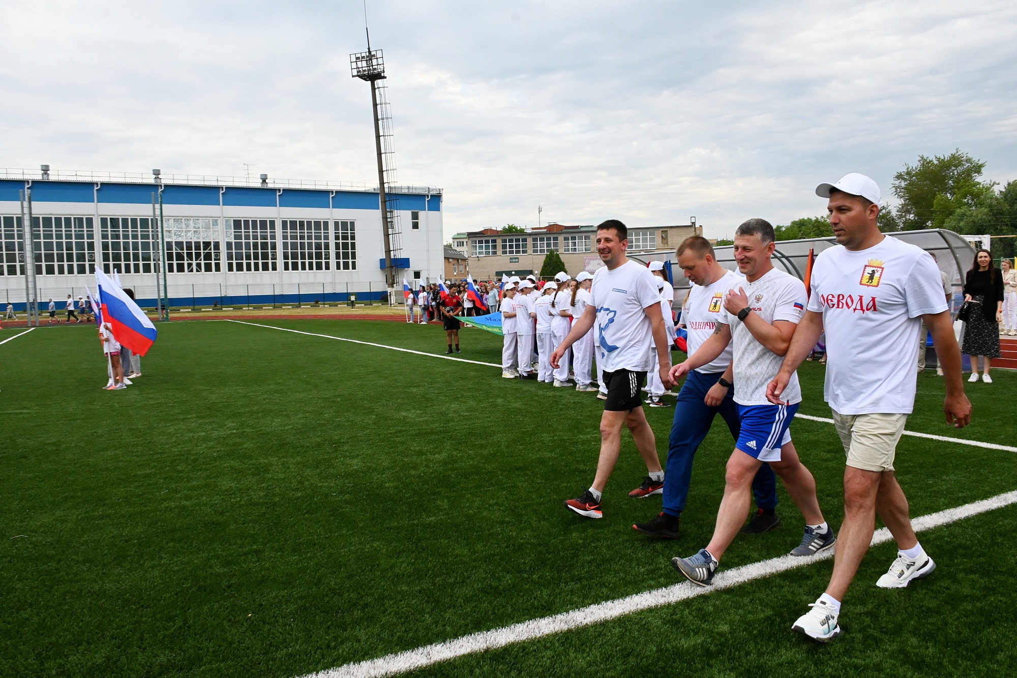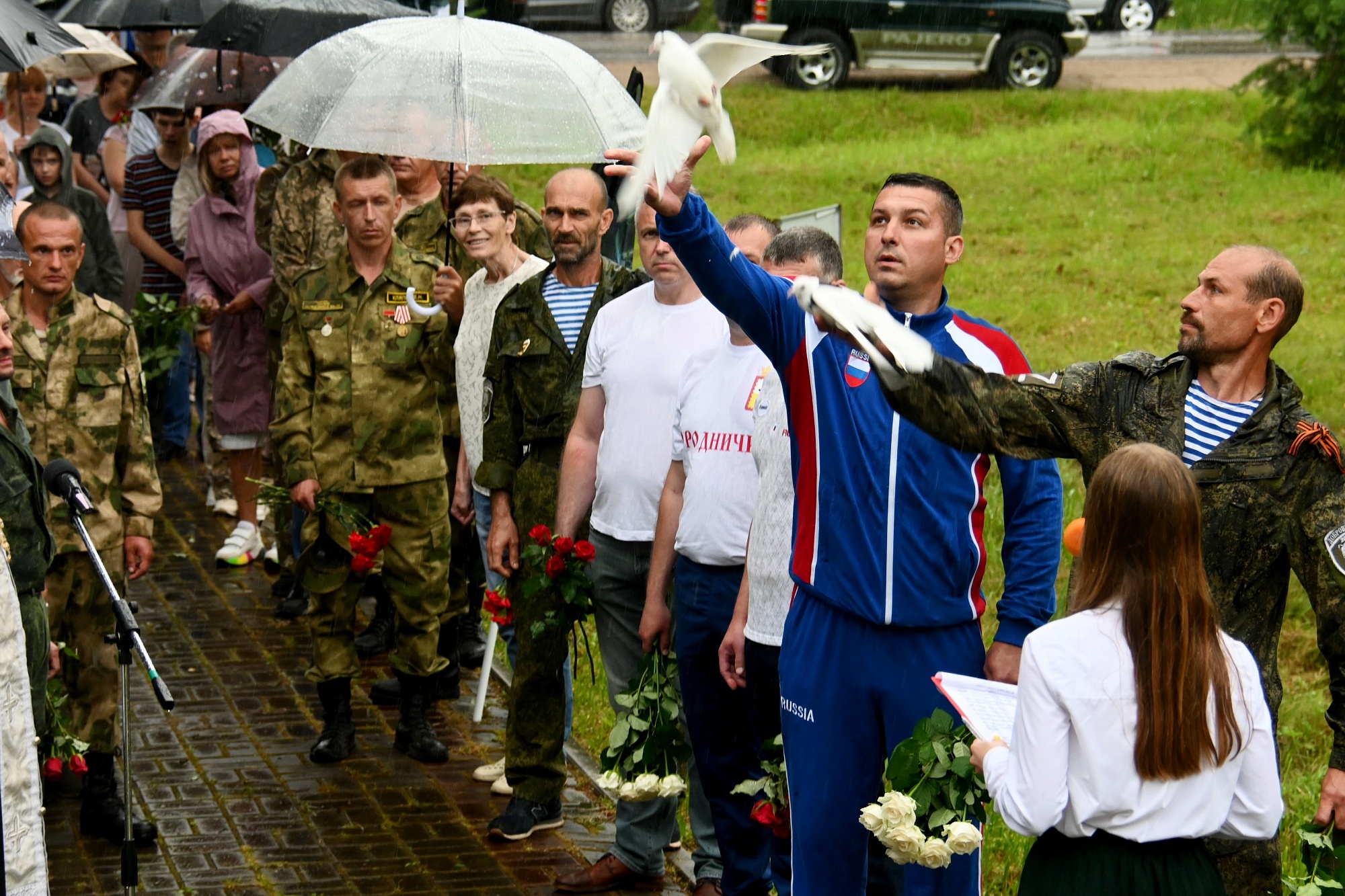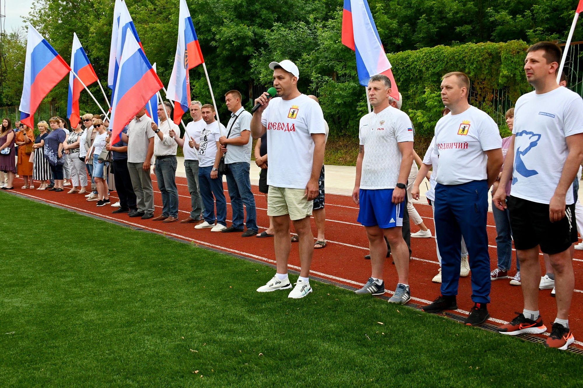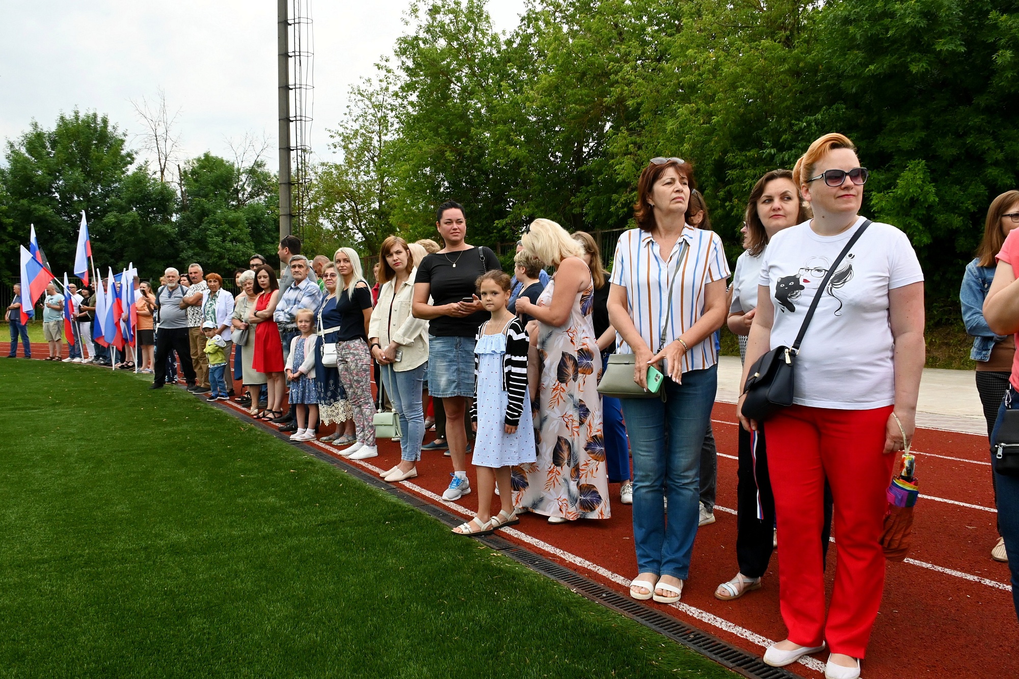 Солисты народных коллективов района исполнили несколько патриотических песен, а воспитанники спортивных секций представили показательные выступления. Всего участниками акции стали около семисот человек. Финальным аккордом стало возложение цветов на воинском мемориале Поле памяти, где в небо были выпущены белые голуби, как символ мира, чистоты и надежды.