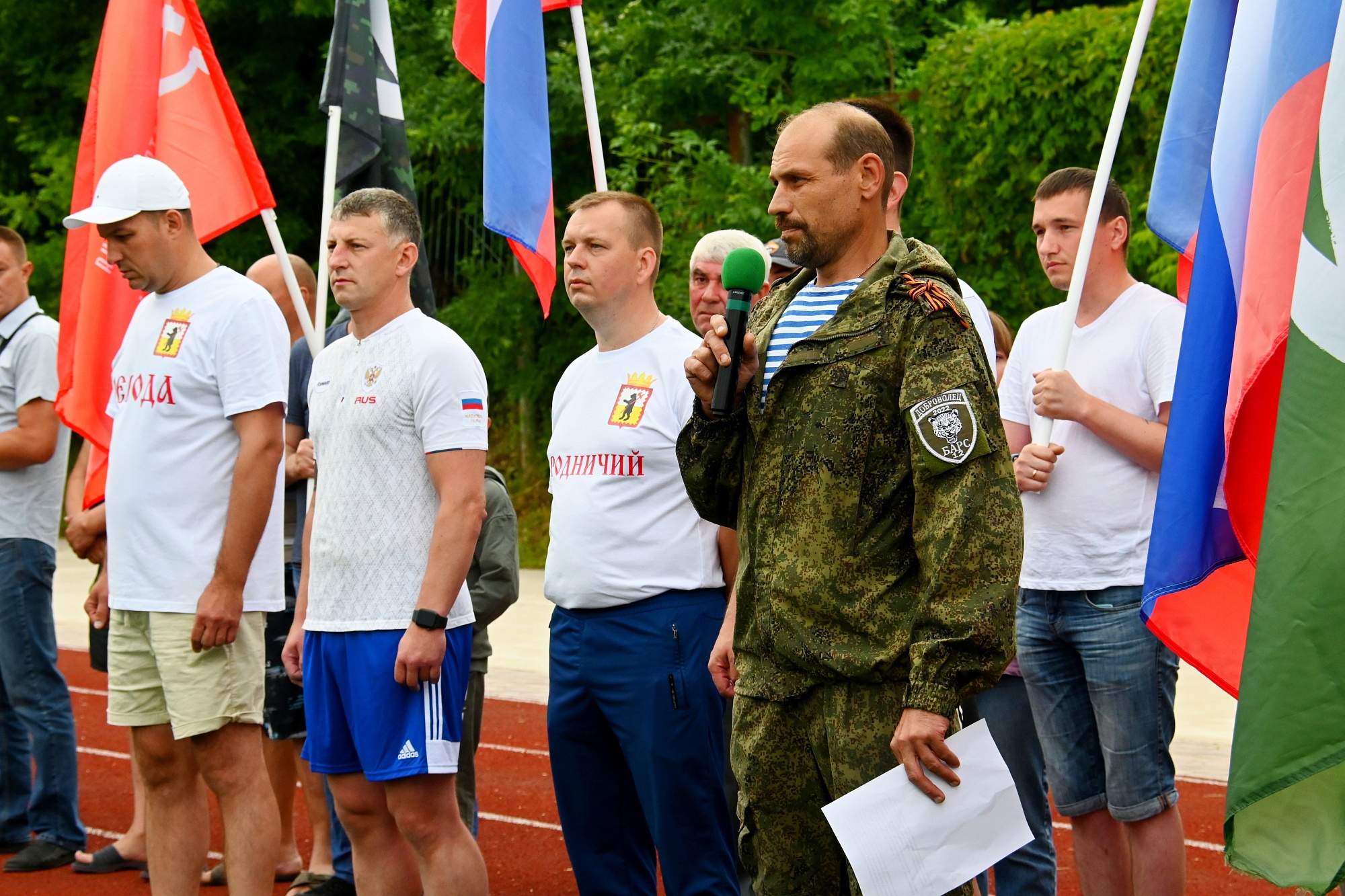 Собравшихся приветствовали руководители района и города, а также участники боевых действий на Донбассе. Они призвали всех жителей региона сплотиться в ситуации, когда Россия защищает жизнь и права жителей народных республик Донбасса.