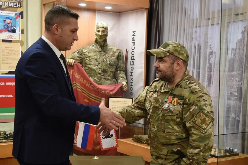 Торжественное мероприятие прошло в экспозиционном зале «Герои нашего времени: СВО, Чечня, Афганистан», где хранятся предметы, документы, свидетельствующие о событиях локальных войн.