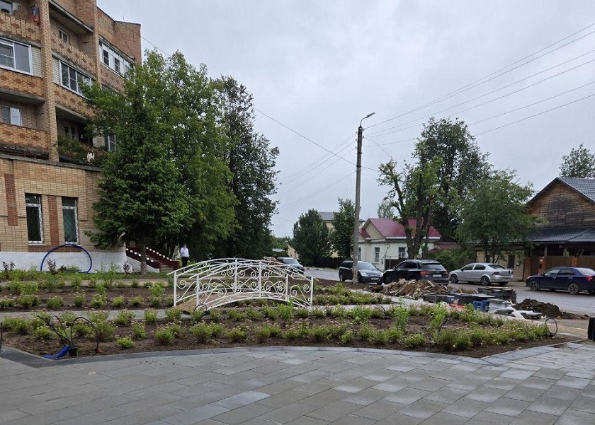 Работы по благоустройству территорию рядом с ЗАГСом проводятся по программе «Формирование комфортной городской среды». Именно эту территорию выбрали жители района.