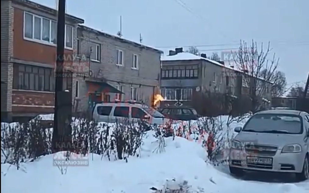 На видео, опубликованном в открытом источнике, видно, что на уровне первого этажа двухэтажного дома в районе газовой трубы полыхает огонь.