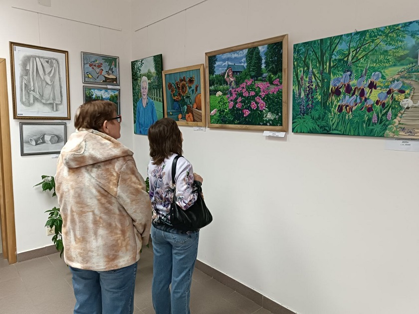 Глава районной администрации Николай Козлов поблагодарил Раису Арефьеву за весомый вклад в развитие культуры района и за многолетнее плодотворное сотрудничество. Сама художница рассказала немного о ходе работы над экспозицией, а также представила двух своих юных учениц – Арину Мазур и Лилию Минину, чьи картины также пополнили новую выставку.