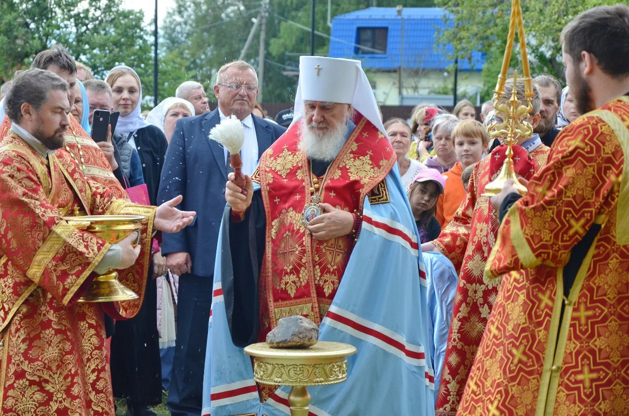 После чина освящения владыка обратился к собравшимся, отметив важность строительство нового храма для духовной жизни Михеева и муниципалитета в целом.