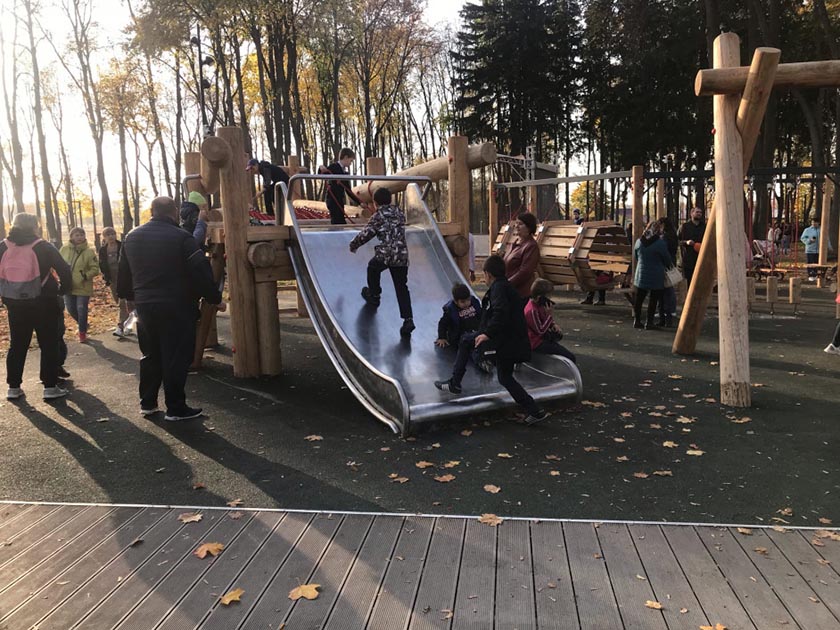 Здесь каждый найдет место для любимого занятия. В парке появились современные скамейки, зона для занятий воркаутом и детская площадка, тренажеры и теннисные столы.