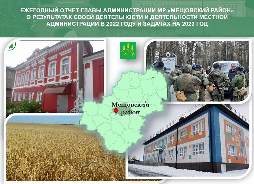Владислав Поляков подробно доложил о результатах мероприятий, которые проводились в рамках нацпроектов «Культура», «Демография», «Цифровая экономика», «Здравоохранение», «Образование», «Жильё и городская среда». Эта работа была направлена на повышение качества жизни всех мещовцев. Сейчас в муниципалитете проживают 11 тысяч человек. В прошлом году мерами соцподдержки воспользовались 310 семей, в которых родились дети. Строительство нового здания детского сада позволило полностью удовлетворить потребности в дошкольных учреждениях. С целью совершенствования обучения в райцентре завершился капремонт школы искусств и создана модельная библиотека. Для дополнительных образовательных программ было закуплено современное оборудование и открыт ещё один центр «Точка роста». Доступ к сети Интернет улучшил работу 49 учреждений. В сёлах Покров, Мармыжи и Серпейск созданы более комфортные условия для медобслуживания в новых модульных зданиях ФАПов. Продолжилось переселение граждан из аварийного жилья и благоустройство общественных территорий.