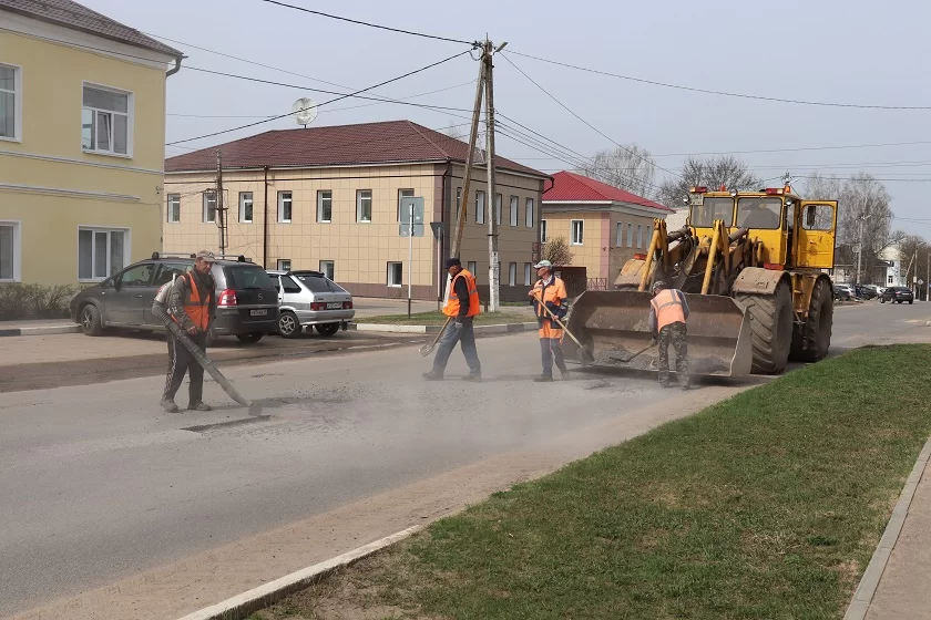 В Мещовске свежей краской обновляются малые архитектурные формы и ограждения. На проспекте Революции в районном центре дорожники ведут работы по подготовке дорожного полотна к ямочному ремонту. Спиливаются аварийные и старые деревья.