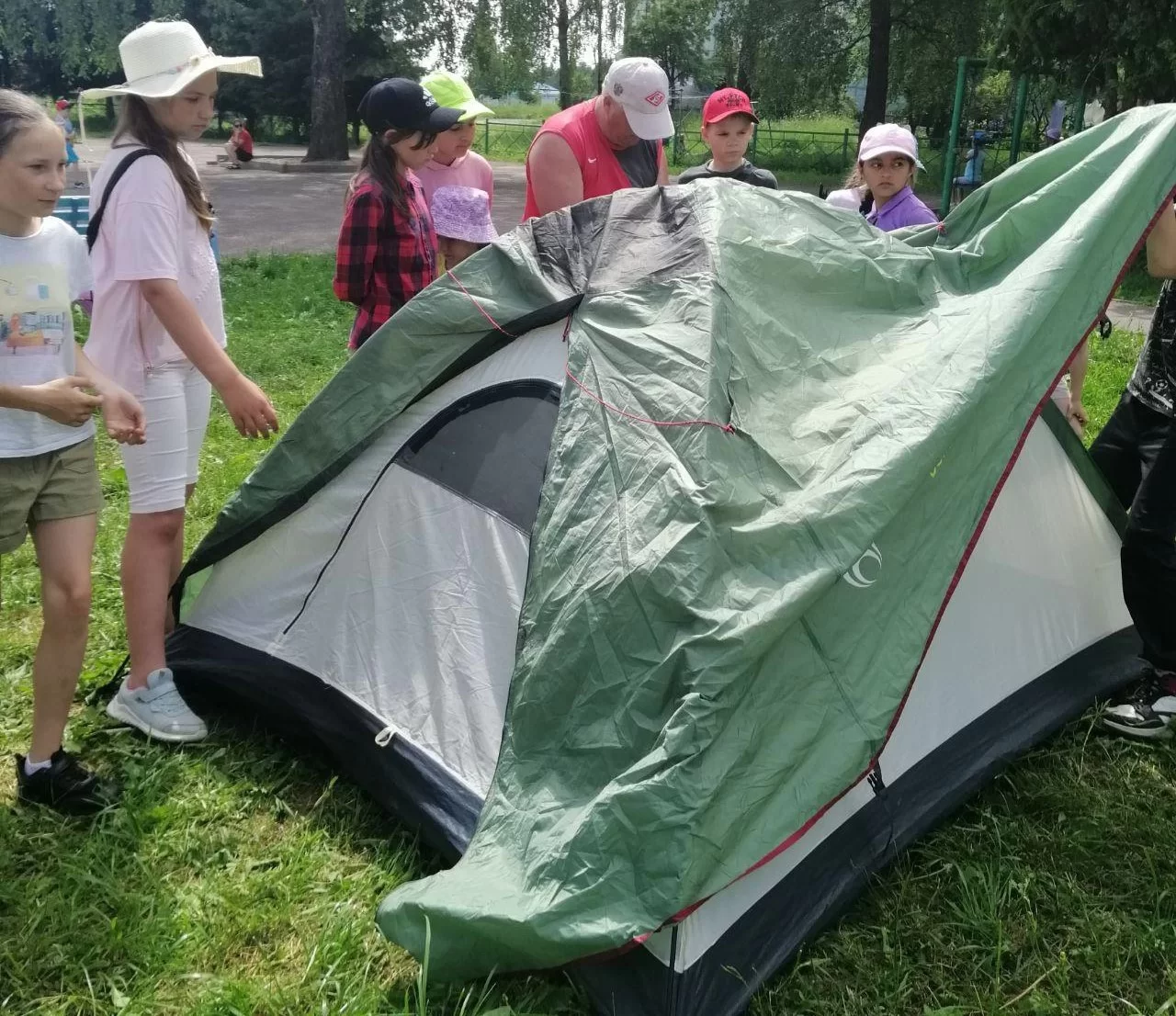 Не забыли и о туристической направленности лагерной смены – учились ставить палатки.