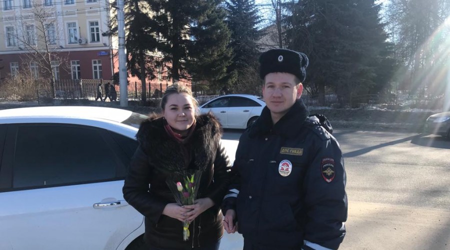 С Международным женским днем калужских водительниц поздравили сотрудники Госавтоинспекции совместно с представителями общественной организации «Дорожный патруль – Калуга», а также аппарата уполномоченного по правам ребенка провели акцию «Цветы для автоледи»: дарили женщинам-водителям цветы и поздравления.