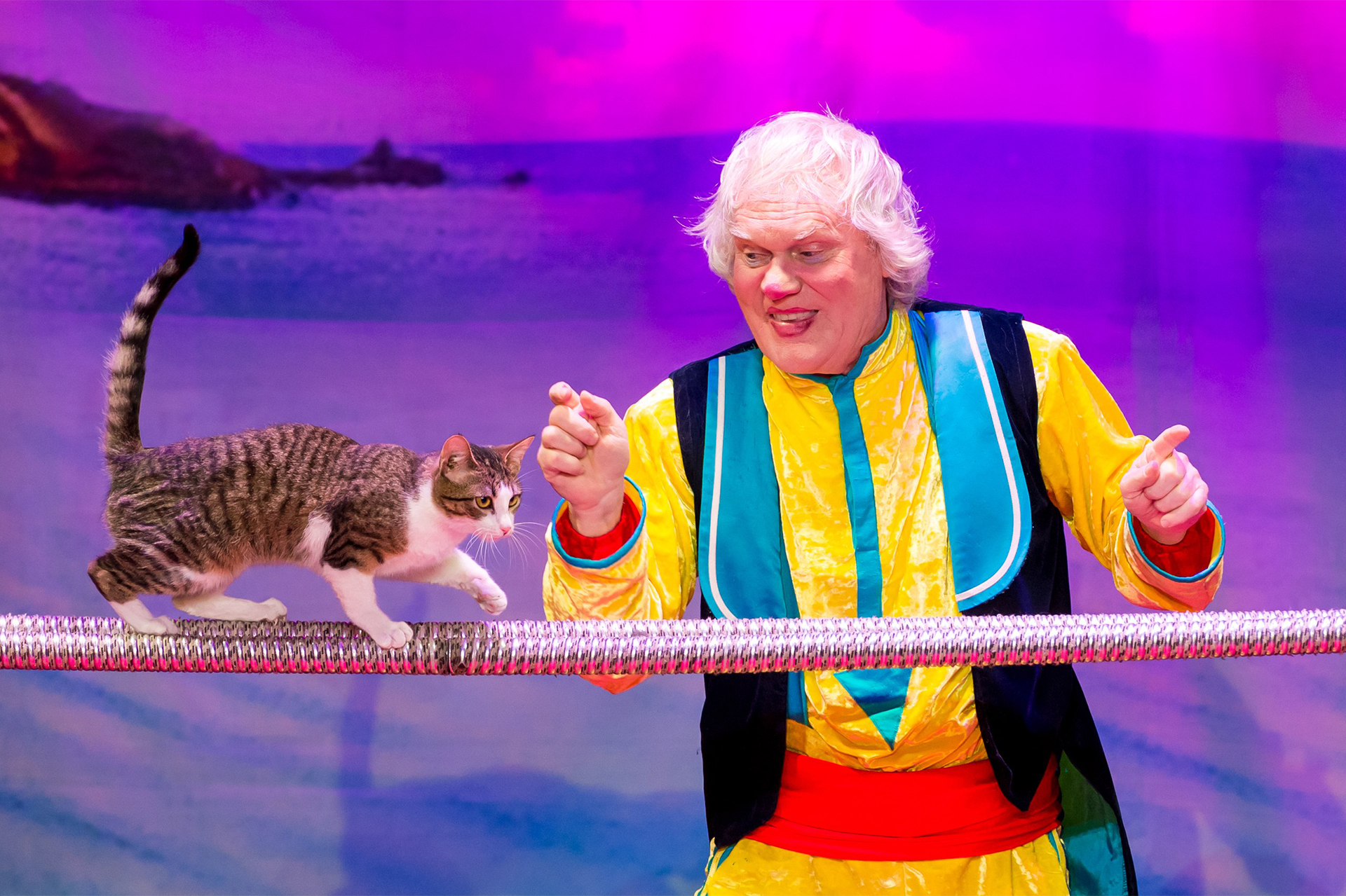 Сегодня в театре Куклачева более 200 кошек, 20 из которых радовали людиновцев своим талантом. На сцене они пили чай, прятались в самоварах и кастрюлях, ловко управлялись с брусьями, прыгали в заданное место с невероятной высоты, катались по сцене на различных приспособлениях.