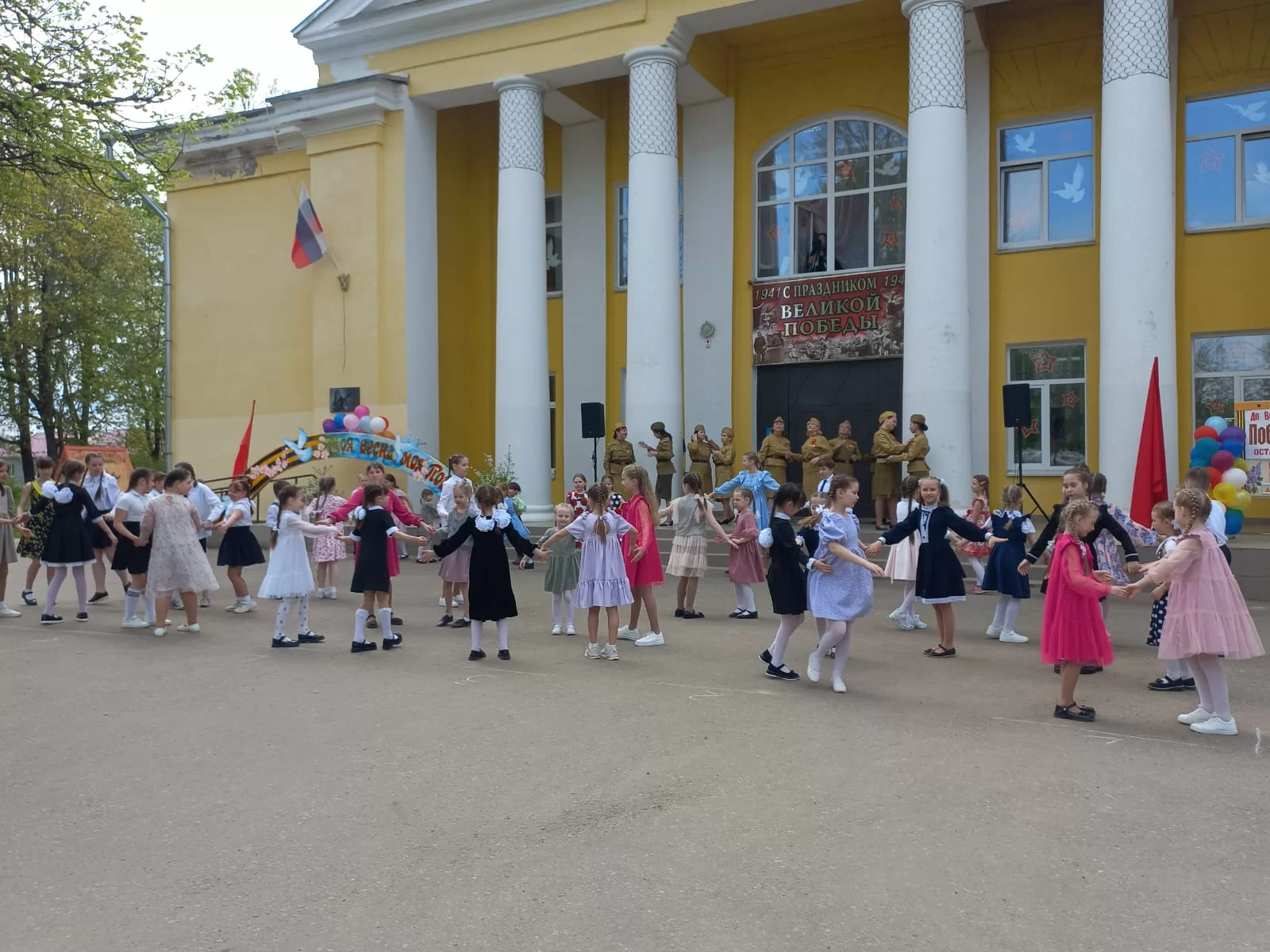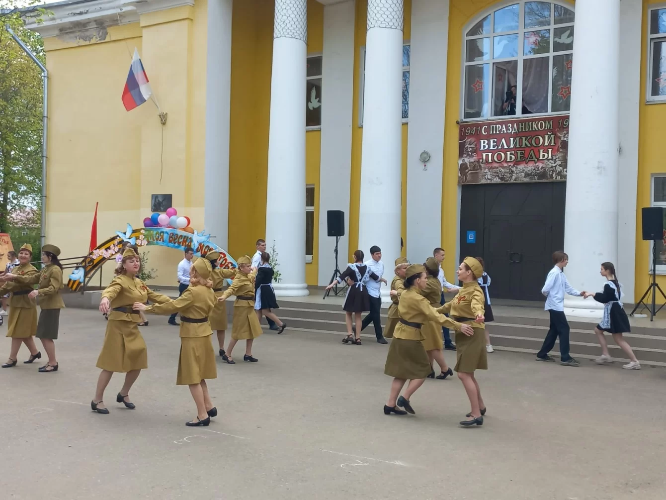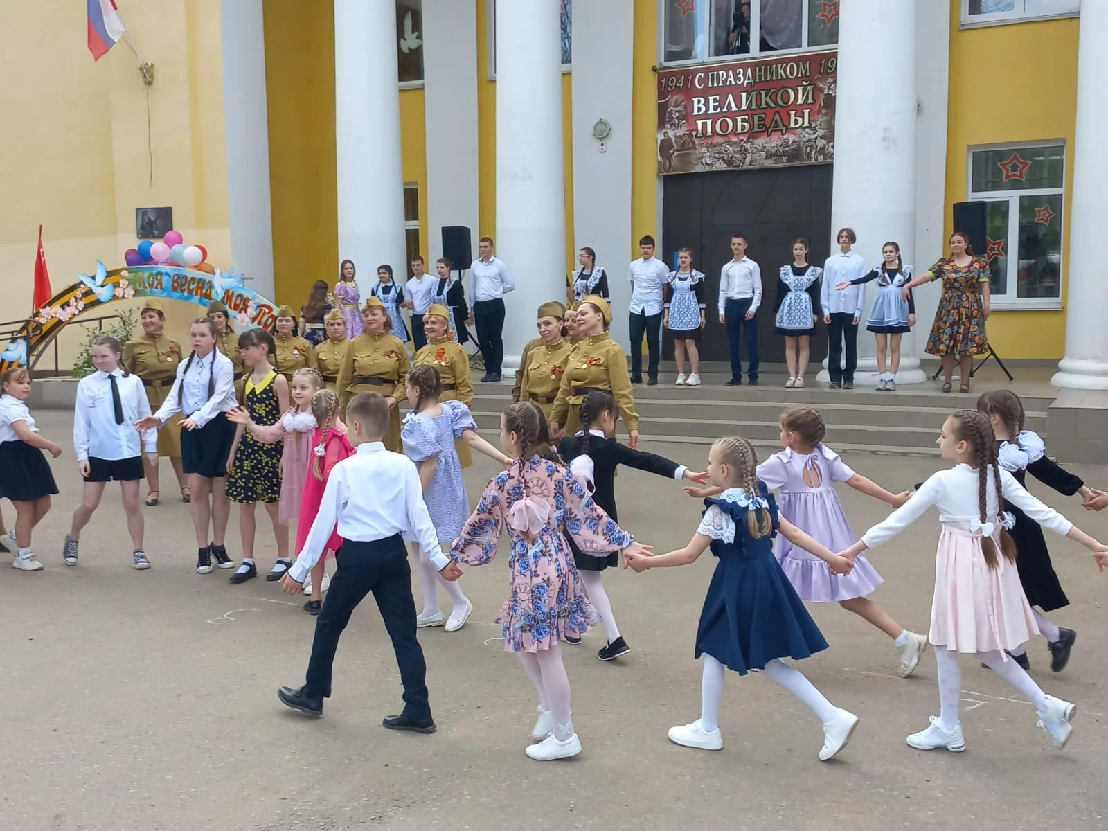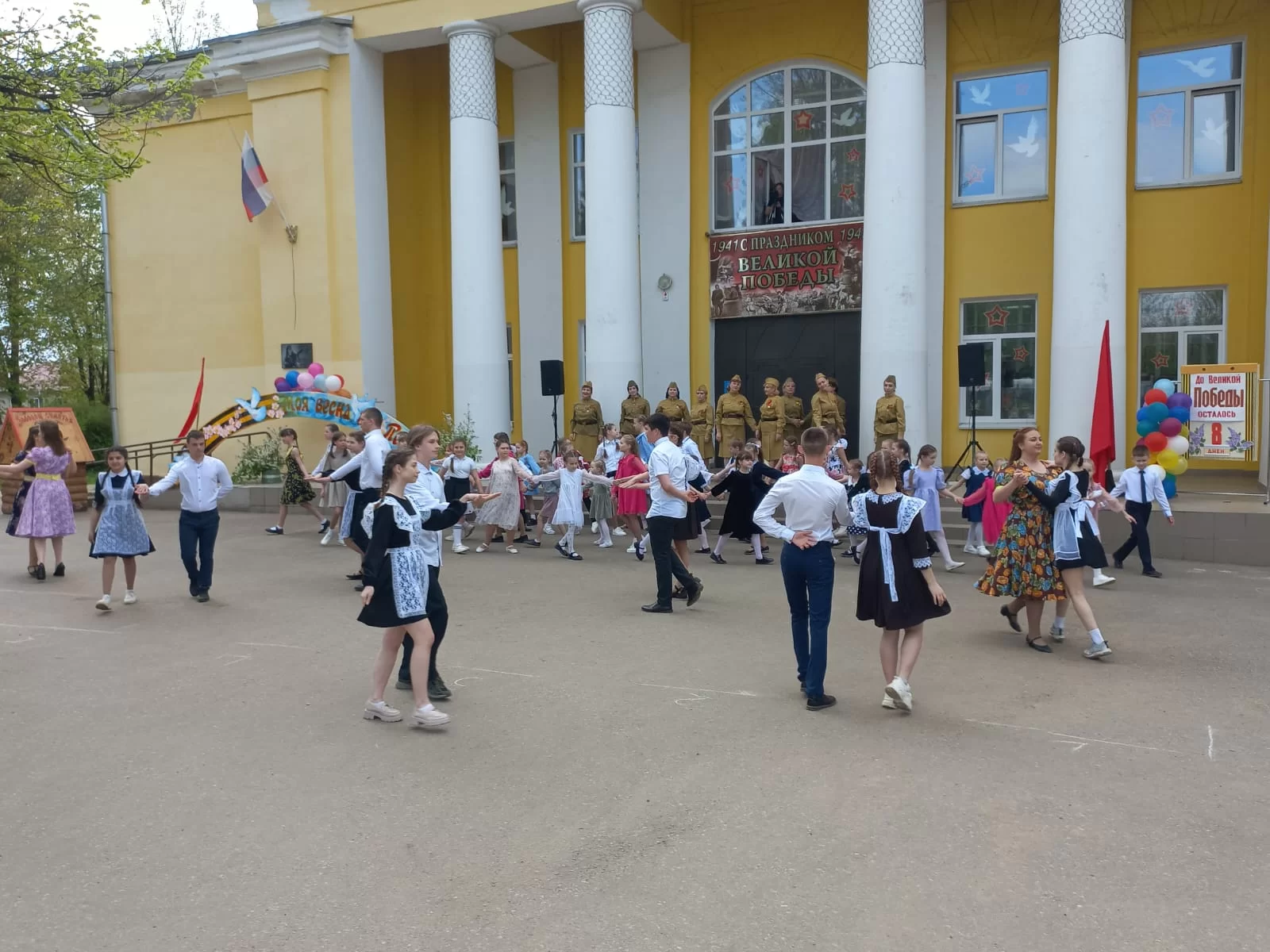 Сегодня на площадке у районного Дома культуры собрались участники танцевальных коллективов «Калинка», «Русь», «Ритм», «Виват», а также учащиеся городской школы № 1.