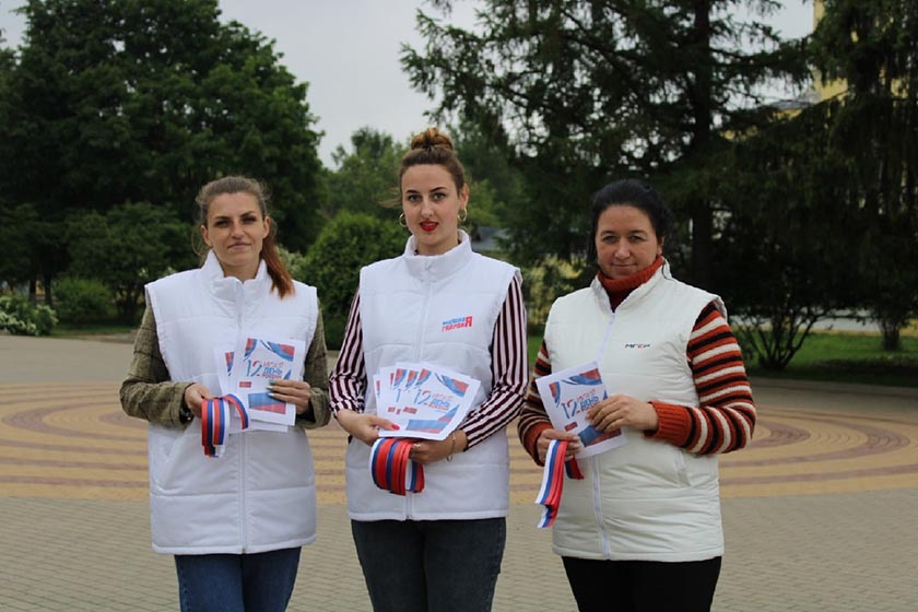 Раздача ленточек проходила и сельских населенных пунктах. Участники акции хотели показать единство, мощь и величие нашей Родины.
