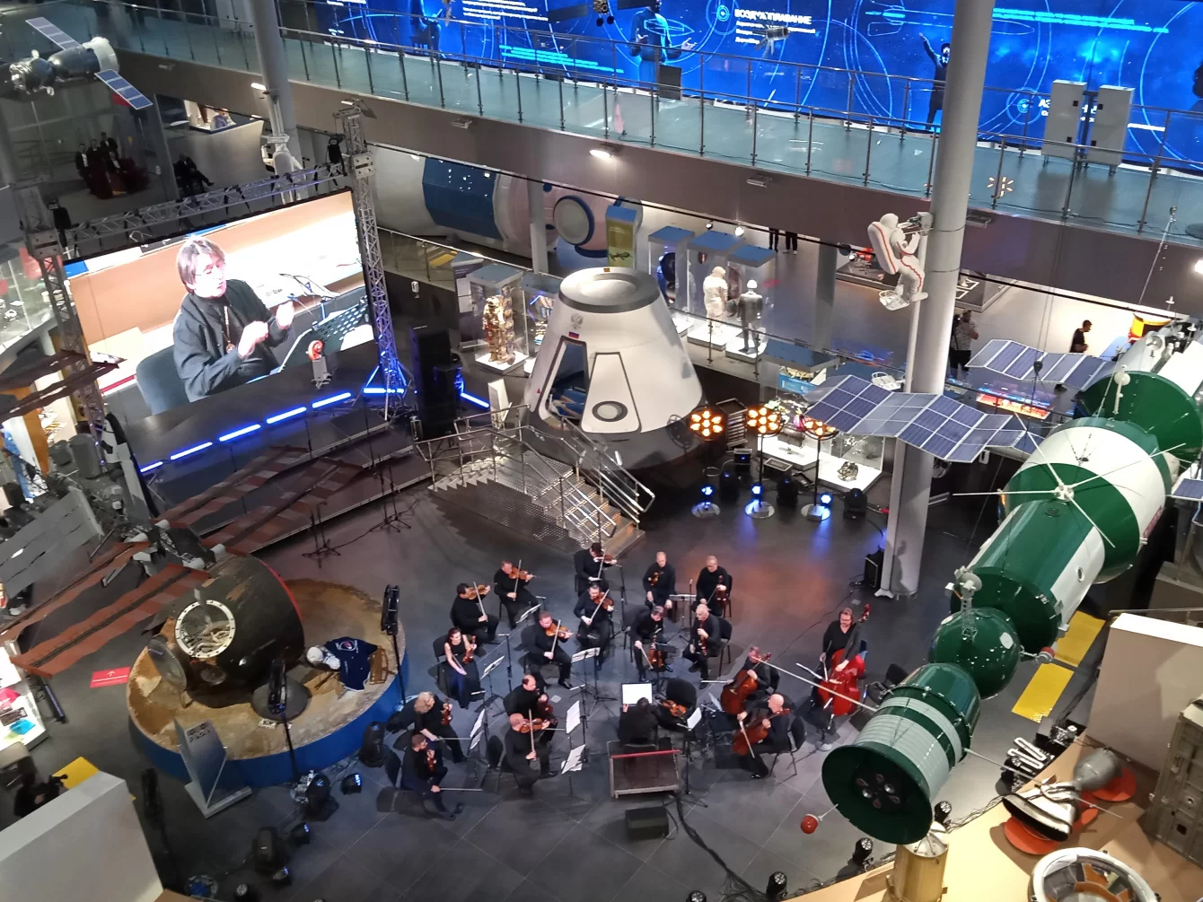 Завершился праздник выступлением знаменитого камерного ансамбля «Солисты Москвы» под управлением Юрия Башмета. Многие зрители наверняка впервые были на концерте этого ансамбля, и они впервые услышали, как замечательно звучат скрипки и виолончели на фоне космических ракет в огромном зале Музея космонавтики.