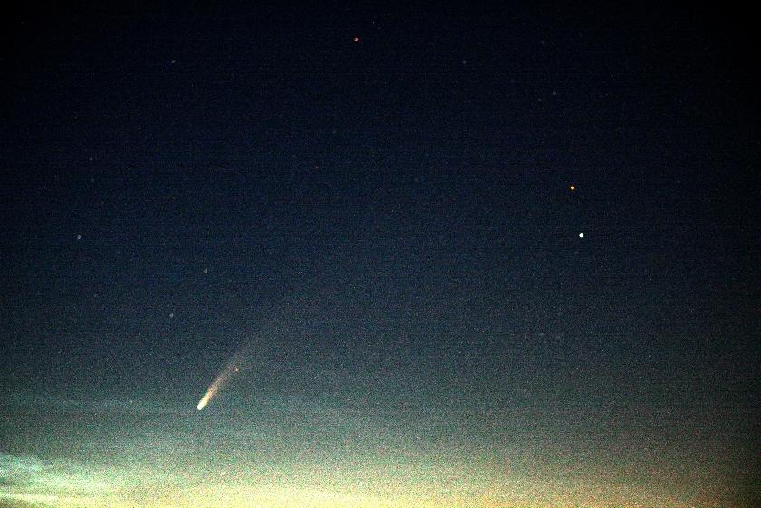 Нынешняя C/2020 F3 (NEOWISE) видна с 23 часов – вначале почти точно на севере очень низко над горизонтом, к двум часам ночи, благодаря вращению Земли, она поднимается повыше. Но комета движется и относительно звезд – в третьей декаде июля она будет еще выше, точно под ковшом Большой Медведицы, и, хотя блеск ее к тому времени, из-за удаления от Солнца, начнет слабеть, это компенсируется тем, что комета будет на более темном небе, выйдя из сегмента зари.