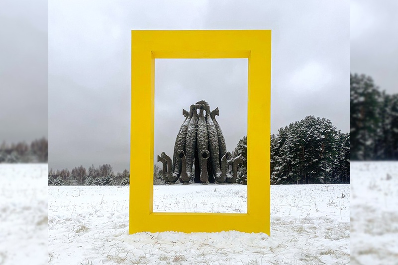 Среди 20 мест, где появилась рамка NG, вошел и расположенный в Калужской области арт-парк «Никола-Ленивец». Знак телеканала установлен с видом на бобур.