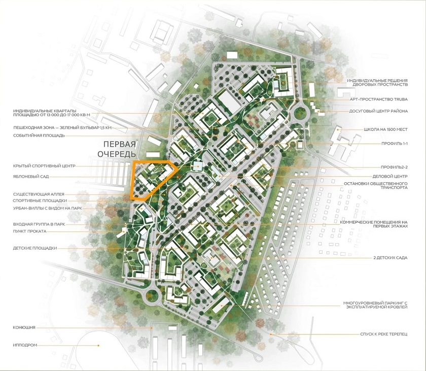 Также здесь планируют построить крытый спортзал, парк, детские площадки, деловой центр, школу на 1, 5 тысячи мест, два детсада и арт-пространство. Новый микрорайон удивит горожан конюшней с ипподромом, яблоневым садом и современной многоуровневой парковкой.