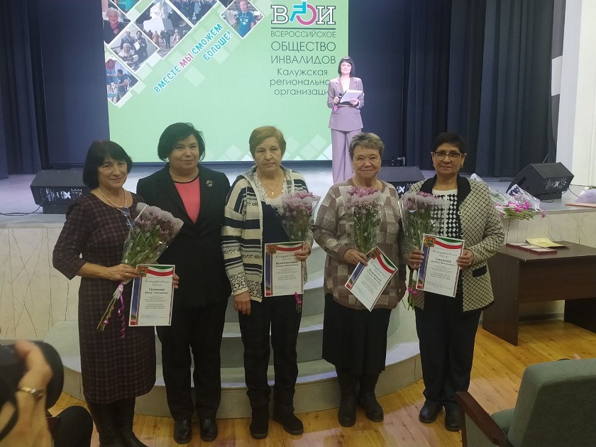 Яркие концертные номера творческих коллективов на сцене ОМЦ сменялись поздравлениями и награждением активистов регионального отделения ВОИ. Членам правления местных организаций и другим активистам были вручены Благодарственные письма, грамоты, почётные знаки местной и Всероссийской организации. Почётным знаком "За заслуги перед Всероссийским обществом инвалидов" был награждён председатель регионального отделения Общества инвалидов Николай Кутузов.Поздравляя собравшихся, Николай Григорьевич оценил работу организации в этом году на «четыре с плюсом», напомнив, что калужане достойно выступили на Спортивном фестивале в Сочи, фестивале настольных игр в Суздали, Фестивале творчества инвалидов в Могилёве.