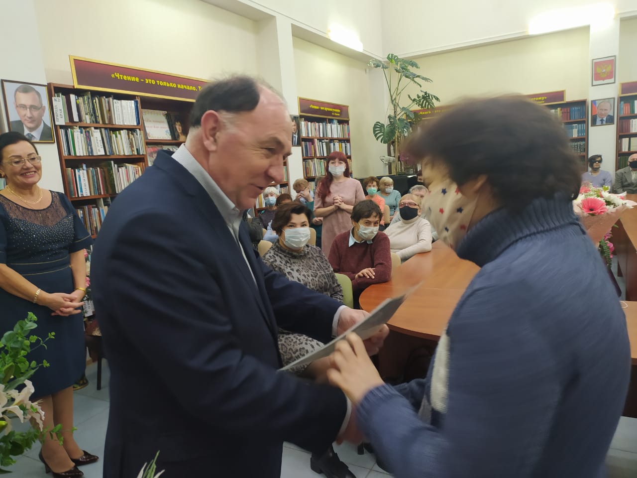 Коллектив и читателей поздравили депутат Госдумы Ольга Коробова, региональный уполномоченный по правам человека Юрий Зельников, председатель областной общественной палаты Галина Донченкова, директор областного колледжа культуры и искусств Олег Латышев.