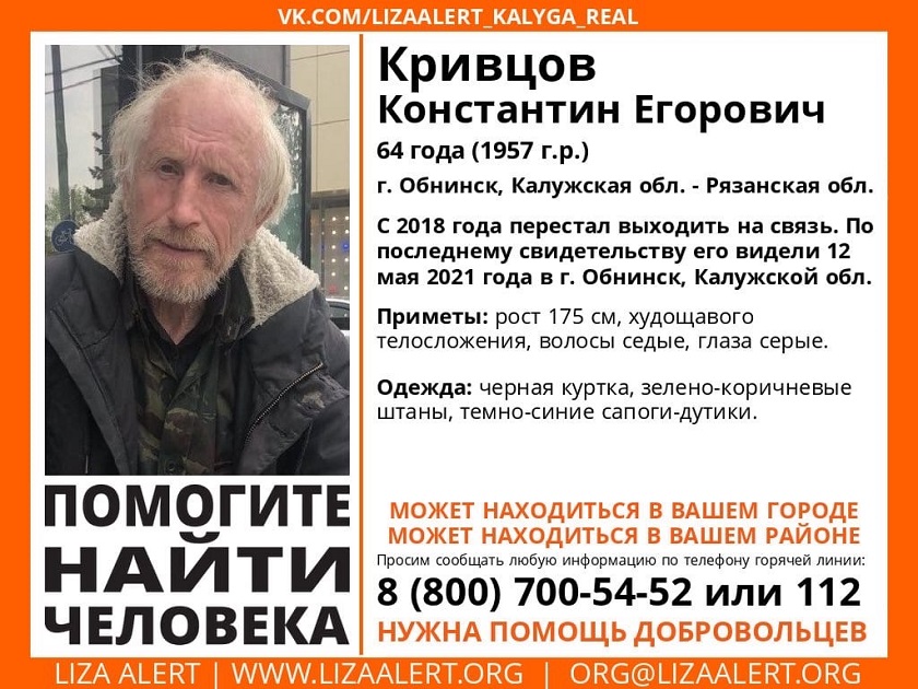 Однако, по обновленной информации прохожие видели его сегодня, 12 мая, в Обнинске.