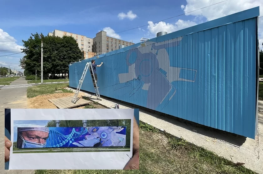 Новая работа Сергея появится в наукограде на стене теплокамеры по улице Курчатова, 27. Несколько месяцев назад на ней должно было появиться патриотическое граффити, но потом было принято решение изобразительную работу посвятить теме медицины.