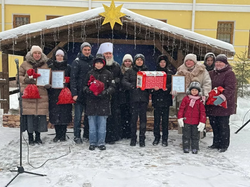 У храма Рождества Христова более 350 детей наряжали ели. Кроме того, Стефан Перевалов вместе с Владыкой Климентом открыли рождественский вертеп.