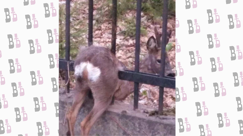 Фото появилось в одной из обнинских групп в соцсетях. Маленький олененок, которого обнинсцы уже окрестили Бемби, застрял в в заборе возле Ленина, 86.