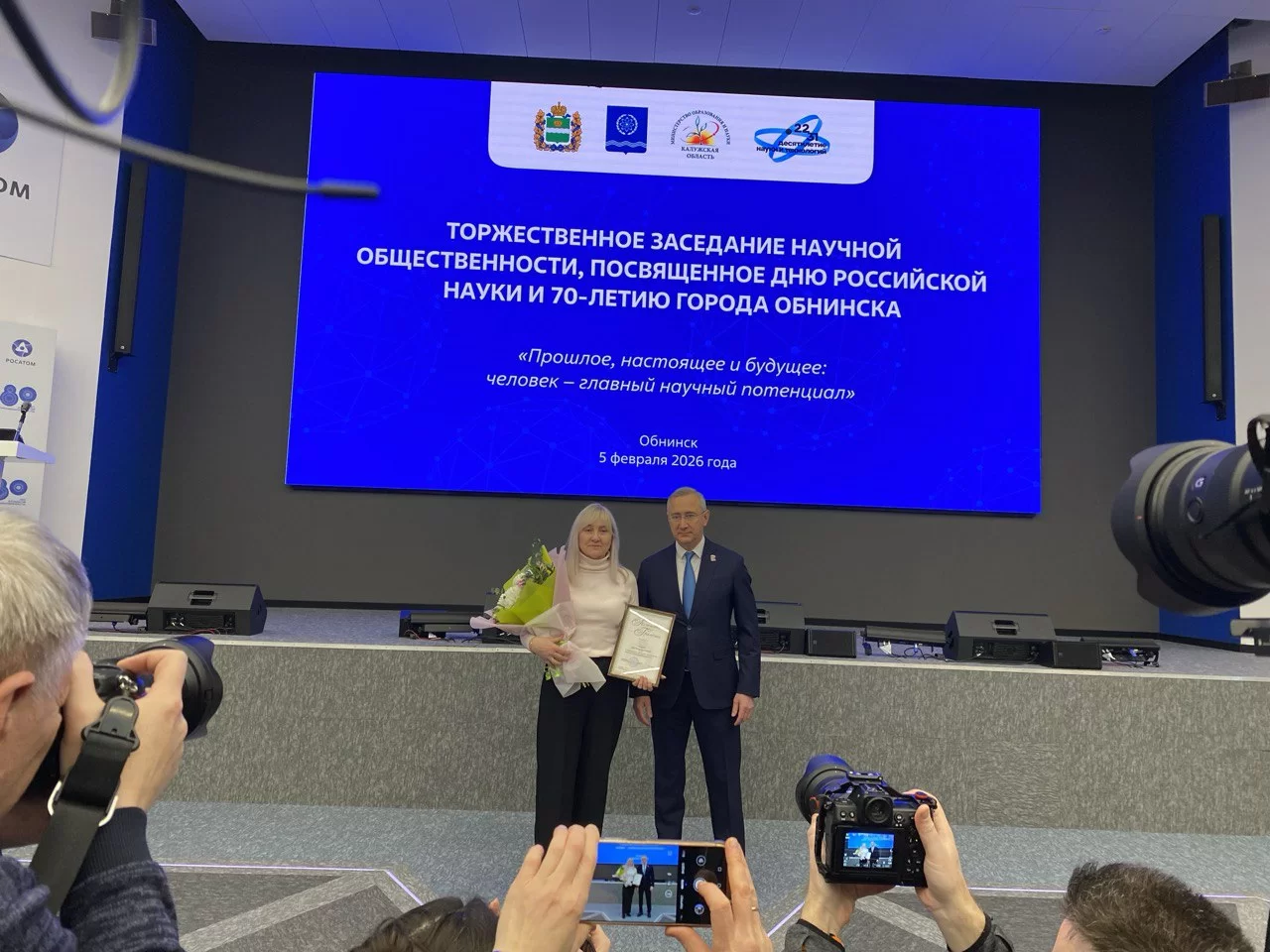 Торжественное заседание представителей научных учреждений и предприятий , посвященное Дню российской науки и 70-летию Обнинска, прошло 5 февраля в Технической академии Росатома.