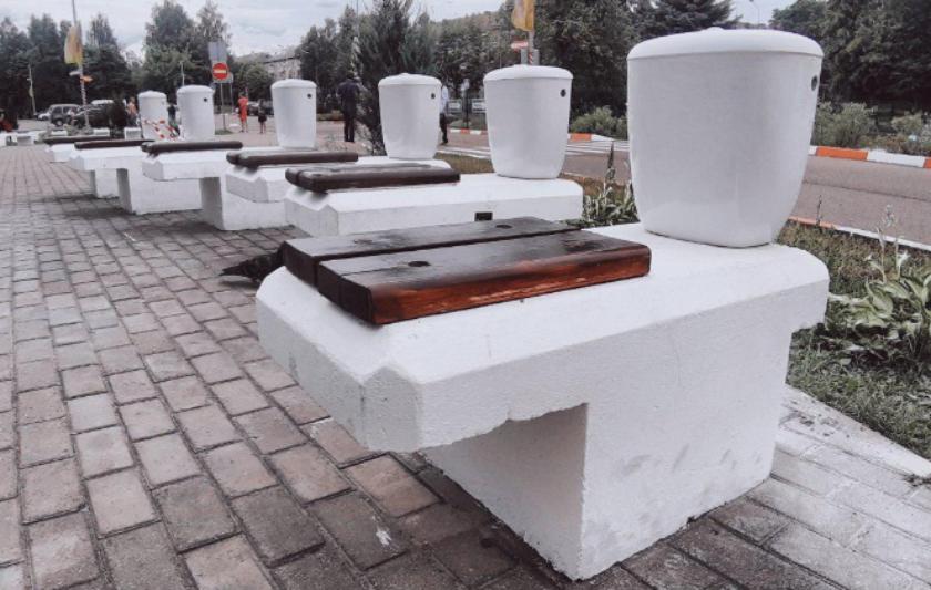 Деревянные сидения, покрытые темным лаком, изображают стульчак унитаза. Кто является автором арт-объектов и что он хотел сказать своим творчеством не известно. В социальных сетях идет активное обсуждение новшества, мнения пользователей разделились: кто-то считает, что таким образом можно привлечь людей к чтению на улице, некоторые пользователи отзываются негативно, отмечая, что авторы показывают свое неуважение, делая из площади Обнинска подобие общественного туалета. Как на практике оценят жители наукограда креативную идею покажет время.