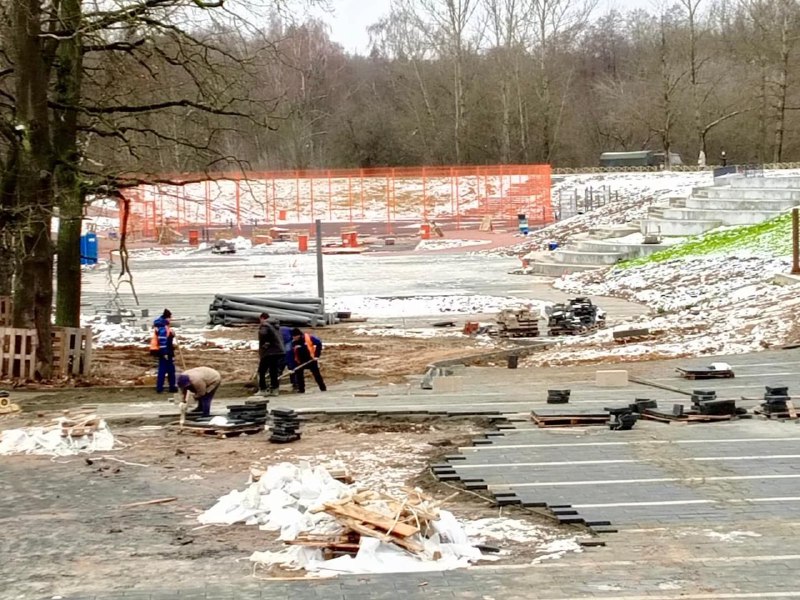 «Идет укладка плитки, установка опор моста. На объекте работают 10 человек»,