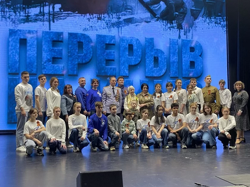 В зале присутствовали руководитель муниципального отделения Всероссийского общественного движения «Волонтеры Победы» Татьяна Жеглатая и ветеран боевых действий на Северном Кавказе, участник СВО Леонид Гирько. Они представили выставку «За наших! За президента!», открывшуюся в фойе перед зрительным залом.