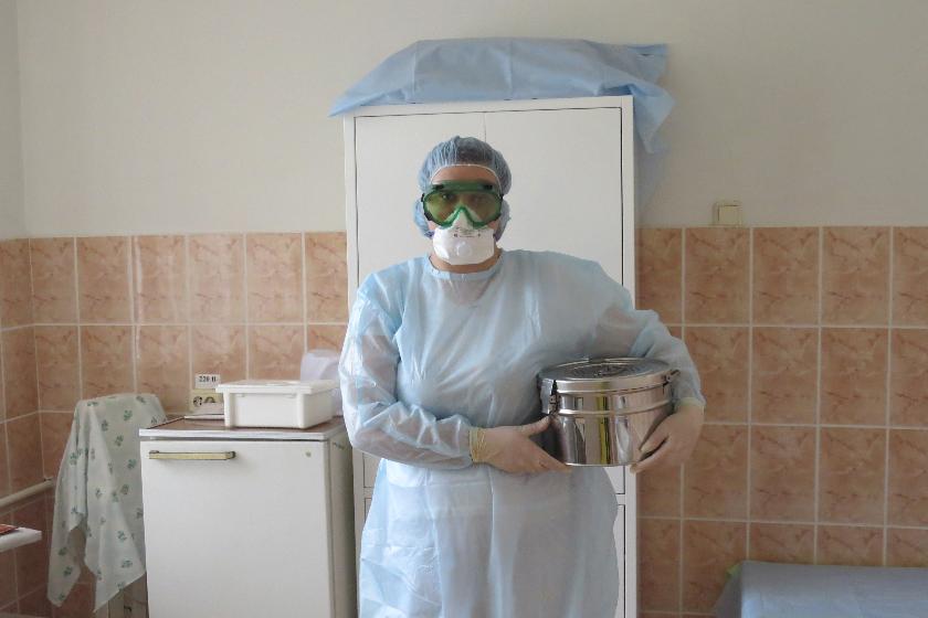 При заборе проб необходимо соблюдать меры предосторожности. Поверх больничных костюмов медработники надевают одноразовый халат. В экипировке – респиратор, плотно прилегающие очки, одноразовая шапочка, бахилы, резиновые перчатки и металлический бокс для размещения проб. На выходе одноразовый костюм снимается и утилизируется. Больничный костюм, в котором находился медработник, отправляется в стирку. Чтобы противостоять опасному вирусу, надо быть во всеоружии, знать, как необходимо действовать. И в настоящее время младший и средний персонал Центральной межрайонной больницы № 1 сдаёт экзамены, отвечая на вопросы теста по коронавирусу.
