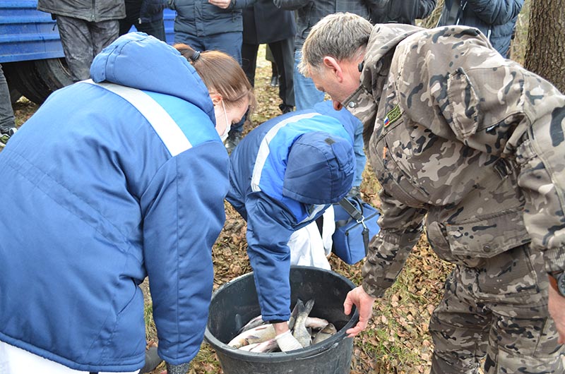 В экологической акции вместе с активными общественниками приняли участие руководители района, представители областного министерства природных ресурсов и экологии, Людиновской службы заказчика, Людиновского отдела Кировской межрайонной станции по борьбе с болезнями животных. Они проверили предоставленные ветеринарные свидетельства о том, что поступившая рыба чистая и здоровая. Предварительно все мальки прошли экспертизу на санитарные заболевания. Специалисты проверили покров рыбы, жабры, убедились, что она в целом весьма активна. После этого ветврачи подтвердили возможность ее запуска в воду.